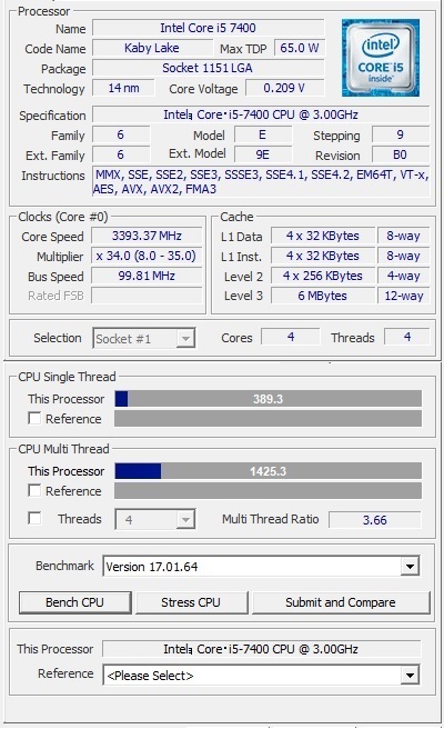Intel Corei5 7400 3.00Ghz LGA1151 動作確認済み【CM17】