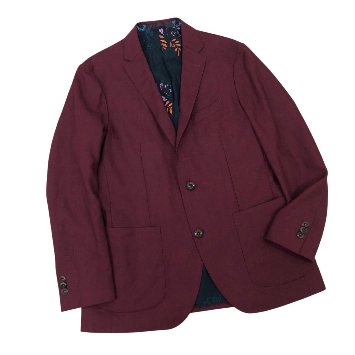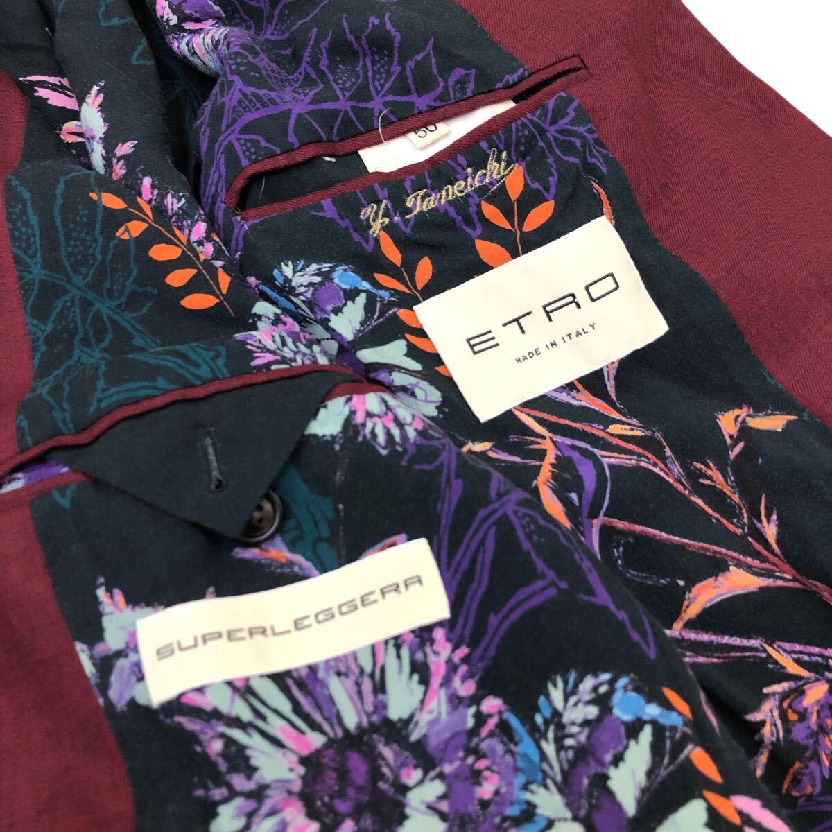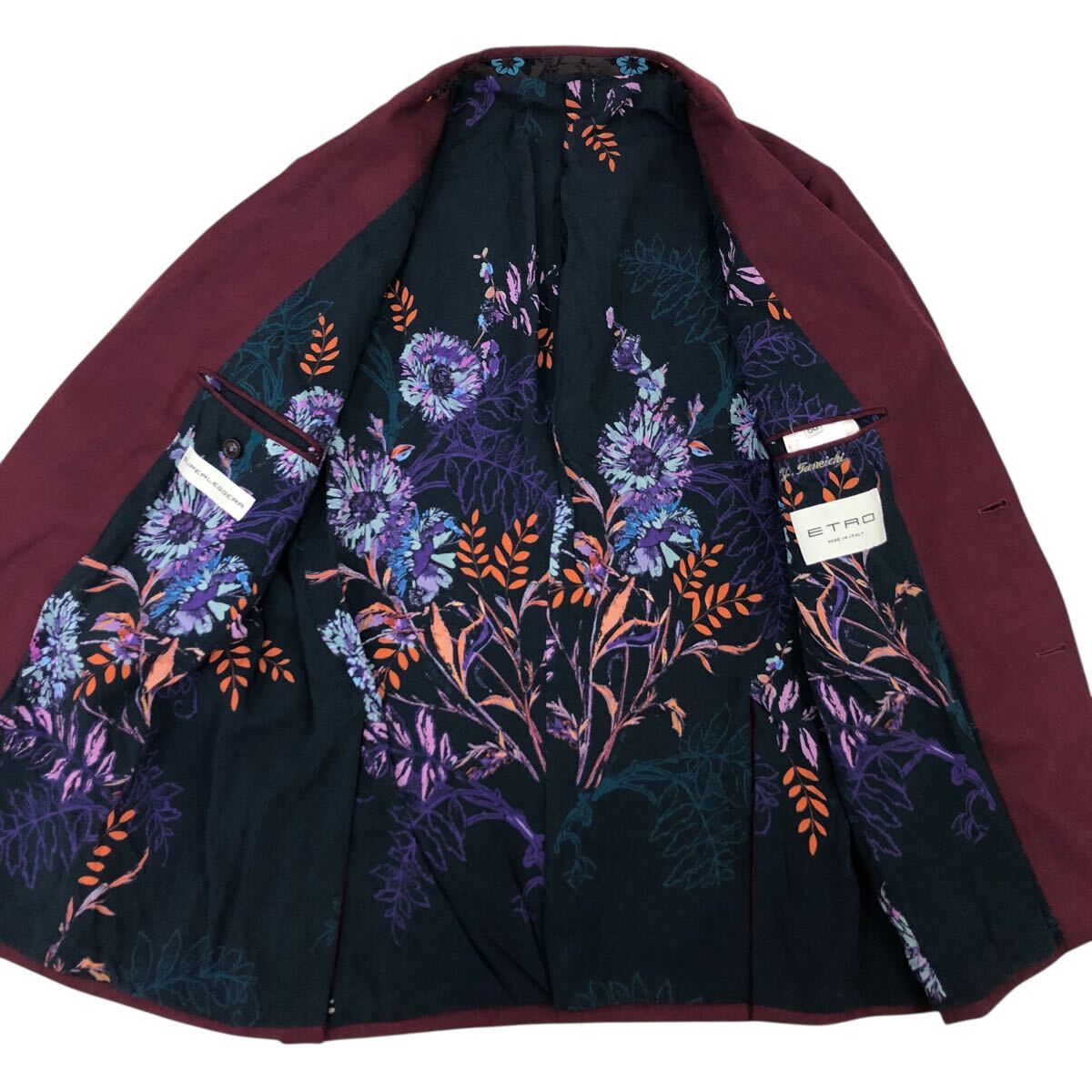 m640-18 イタリア製 ETRO エトロ SUPERLEGGERA テーラード ジャケット 裏地 花柄 ブレザー 上着 羽織り ボルドー メンズ 紳士 50
