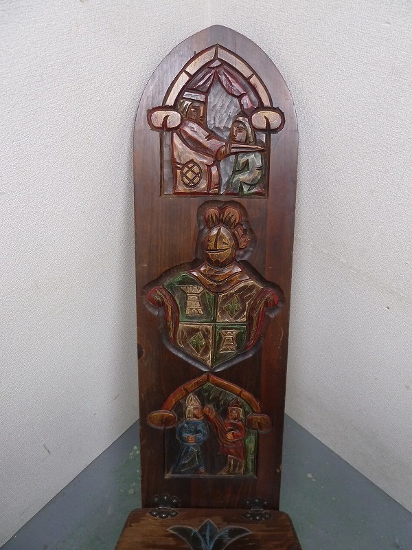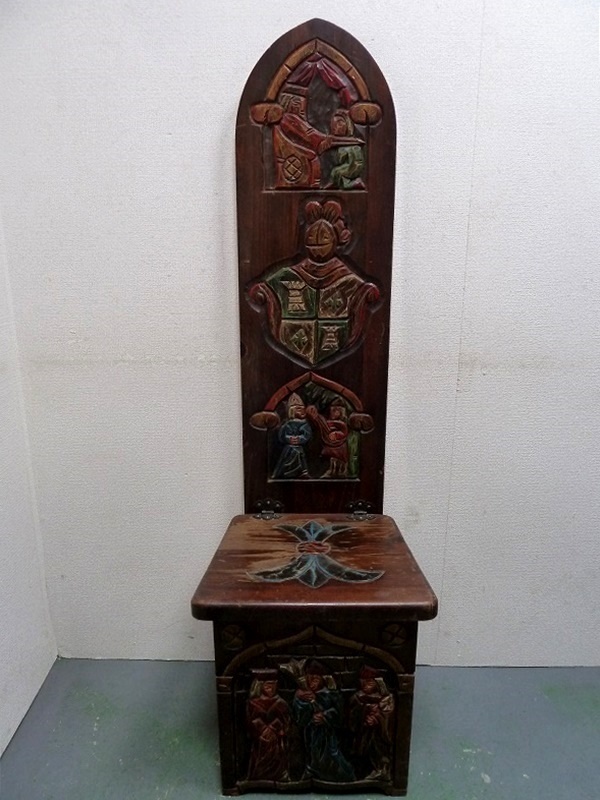 (☆BM)木製 木彫り ハイバックチェア 椅子 全高136㎝ ヨーロピアンレトロ アンティーク調 収納 物入付き 家具