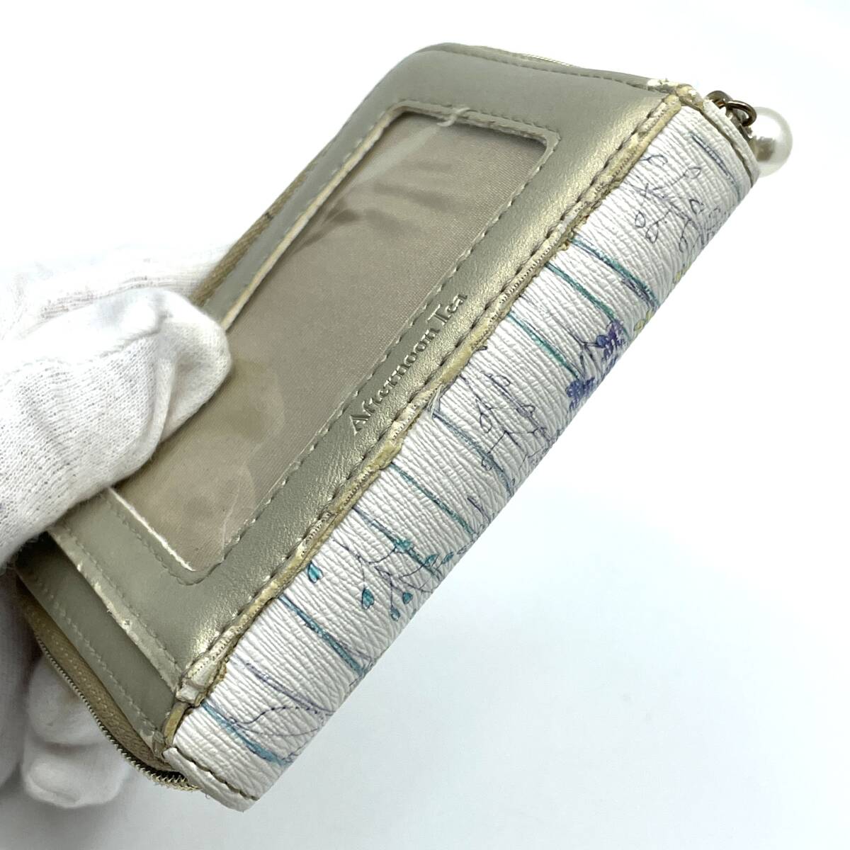 Afternoon Tea アフタヌーンティー コインケース カードケース パスケース ラウンドファスナー ゴールド系 花 フラワー Fパール