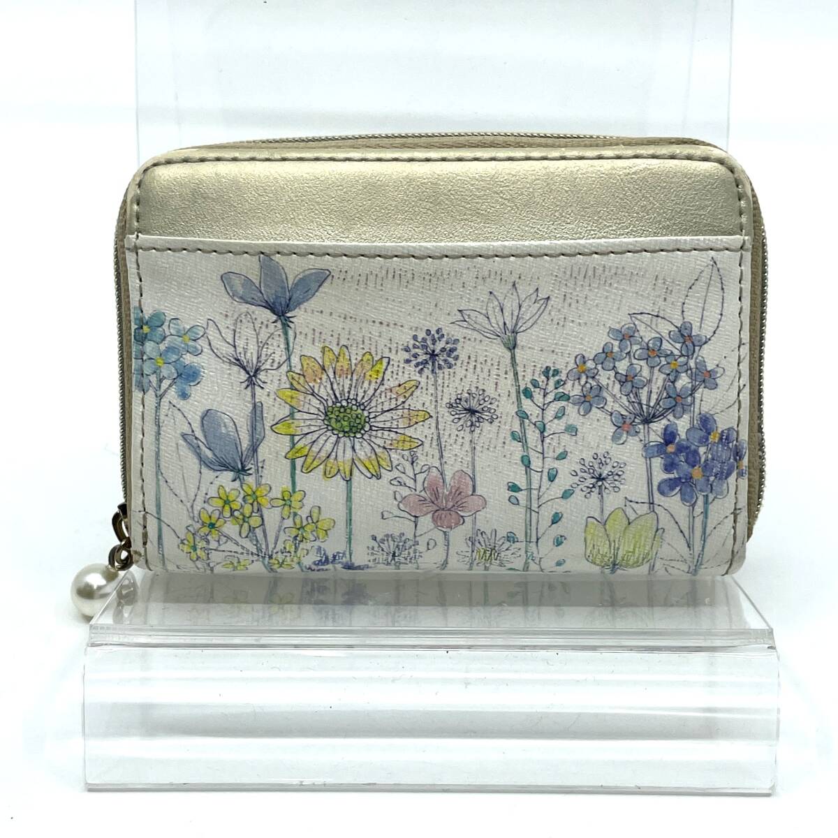 コインケース カードケース パスケース ラウンドファスナー ゴールド系 花 フラワー Fパール