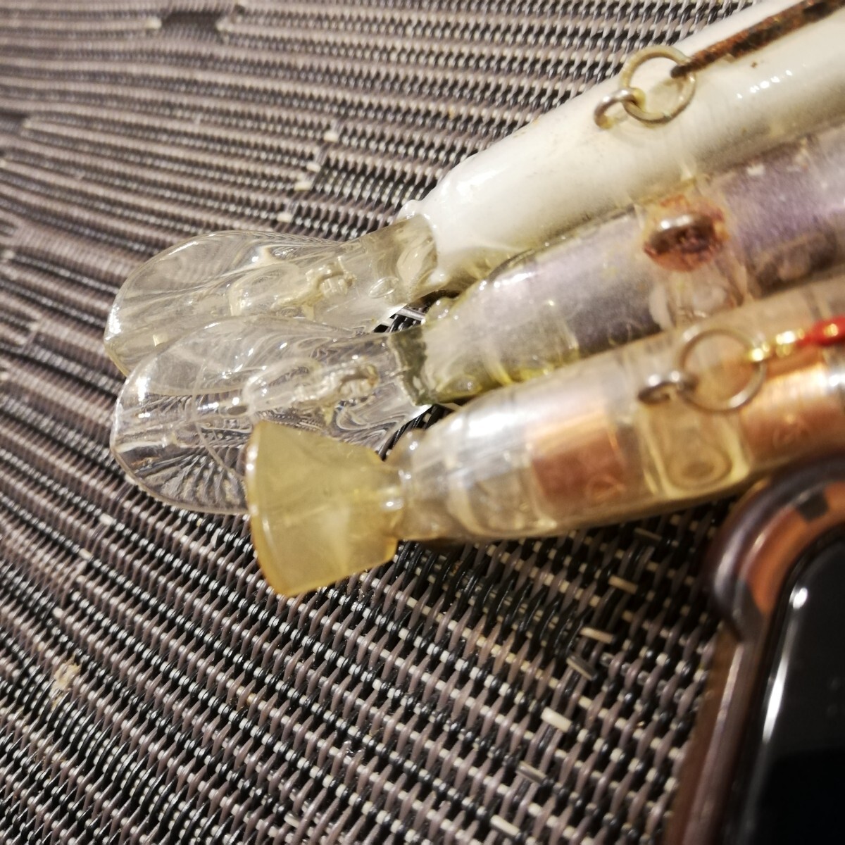 真中のロングビルは、フロントフックアイ周りの錆び有ります(浸水無し)。