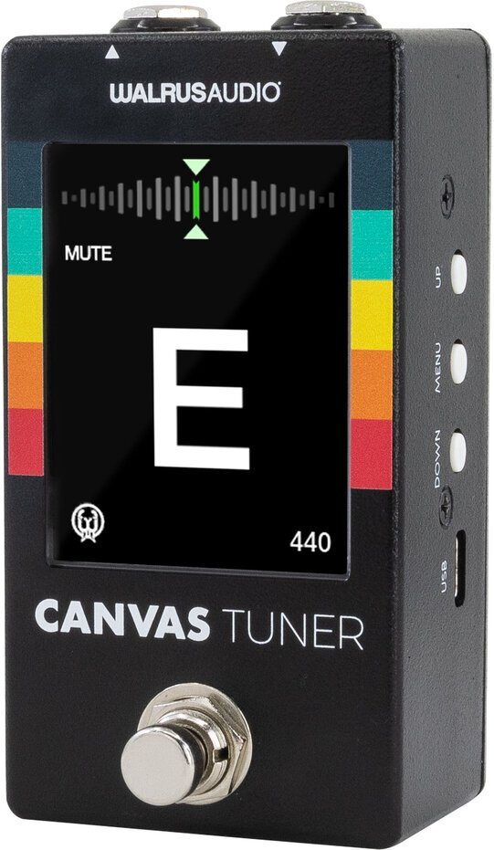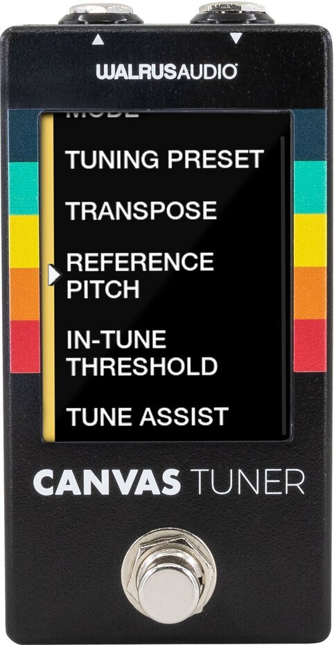 | Canvas Tuner あなたの好みにカスタマイズする高精度チューナー おそらくボード上で最も重要なペダルであるCanvas Tunerは、多用途性と正確性を備え楽器が最高のサウンドを出せるよう準備するためのツールとなります。すべてのWalrus Audioペダルと同じ頑丈なツアー対応の筐体にパッケージ化されたチューナーは、ほぼすべてのステージ照明条件下でも使える視認性の良い2.8インチTFT LCDディスプレイを備え、複数の画面方向、±0.1セントの精度、バッファーまたはトゥルーバイパスオプションなど、現場でチューナーに求められるあらゆるものが採用されています。Canvas Tunerを使用すれば、楽器があなたのサウンドを正確に表現するための最高のツールになるでしょう。 妥協のない精度 Canvas Tunerのチューニング精度は±0.1セント。この高いチューニング精度に加え、複数のチューニング・プリセットで期待通りの正確なチューニングを実現。自信を持ってチューニングを行い、あなたの音楽を明瞭に輝かせます。 幅広い音域に対応 20Hzから20KHzまでのフラットな周波数帯域を持つWalrus Audio Tunerは、幅広い音域のチューニングに対応しています。5弦ベスなどのLOW Bチューニングも安心して正確なチューニングができます。 TRANSPOSE ギターのドロップチューニングまたはカポチューニングに合わせてチューニングプリセットを移調可能。チューニングプリセットは、カポ5 5半音からドロップ6 6半音まで移調できます。 REFERENCE PITCH 使用する基準ピッチを、390Hzから490Hzまでの範囲内で上下することができます。 IN TUNE THRESHOLD チューニングの正確性を判断するためにチューナーが使用するウィンドウを、セント単位で変更できますスレッショルド値を低くするとチューニングがより正確になり、スレッショルド値を高くすると視覚的なフィードバックが早くなります。 チューニングアシスト Tune Assistがチューニングを迅速かつ正確にガイドし、素早く簡単なチューニングができるようになります。Tune Assistを使用すると、音のチューニングが所定のしきい値を超えて維持されると、ディスプレイの縁(ふち)が点滅してチューニングが整い次の弦に移動できることを知らせます。SlowSlow(遅い、Medium(中間、Fast(早い、Instant(瞬時)のスレッショルド値より、入力した信号がチューニングウィンドウ内に留まる時間を選択できます。 バイパスオプション Canvas Tunerは4つのバイパスとミュートモードを備えています。 BUFFERED BYPASS:バッファードバイパス。全高調波歪み率0.001% のクリーンで低ノイズ、高ヘッドルームのオーディオバッファを介してオーディオをルーティングするバッファードバイパスによる究極の柔軟性をお楽しみください。このバッファは、1Mオームの高入力インピーダンスと400オームの低出力インピーダンスを提供し、最高レベルのシグナル・インテグリティを維持します。チューナーが有効な状態では、入力された信号はミュートされチューナーが表示されます。 TRUE BYPASSBYPASS:トィルーバイパス。バッファが不要な場合に入力と出力間でバッファを通すことなく信号が出力されます。 MONITOR MODE MODE:チューナーが常に表示され、ミュートされていない間はクリーン低ノイズバッファを通ります。このモードではバイパススイッチでミュートのオンオフを切り替えることができます。 PASS THRU:入力された信号は本機のクリーン低ノイズバッファを通過します。このモードではバイパススイッチを押すことでチューニング画面とスタンバイ画面の切り替えをミュートすることなく選択することが可能です。(ミュート不可) チューナーモード ニードルとストロボの両チューニングモードの切り替えが可能。それぞれ視覚的にわかりやすいチューニング表示を提供します。 ディスプレイカスタマイズ Canvas Tunerは自分の好みに合わせて様々な設定ができます。 BRIGHTNESS:スクリーンのバックライトの輝度を1 10段階で調整可能です。 ORIENTATION:ディスプレイを90度ずつ、360度回転できます。 COLOR THEME:ストロボニードルモードでのノートインジケーターの色をカスタマイズできます。 STANDBY SCREEN:バイパススクリーンをカスタマイズ。Canvas Tunerは3つの異なる待機画面モードの中からお好みのものを選ぶことができます。 Firmware Updates www.walrusaudio.io経由でファームウェアをアップデートしてチューナーを最新の状態にできます。改善や新機能の追加が利用可能です。 ~SPEC~ 周波数特性:20Hz To 20kHz チューニング精度:±0.1 cent THD:0.001%@20Hz 20dBu,0.001%@1kHz 20dBu ノイズ・フロア112dBu 信号対雑音比(SNR):98dB@1kHz 入力インピーダンス:~1M Ohms 出力インピーダンス:~400 Ohms 電源:9VDCセンターマイナス(アダプター専用)300mA minimu Bypass options: ・小シグナルリレーによるトゥルーバイパス ・ハイクオリティオペアンプベースのバッファ・バイパス採用 SIZE:6.2cm(W)×5.9(H)×11.7(D)cm WEIGHT:248g |
