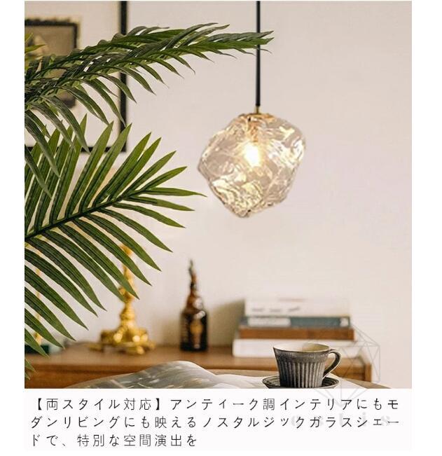 新品 ペンダントライト おしゃれ ガラス 1灯 吊下げ灯 照明 北欧 LED電球対応 ガラス造形 トイレ 階段 引掛けシーリング レトロ 電球色