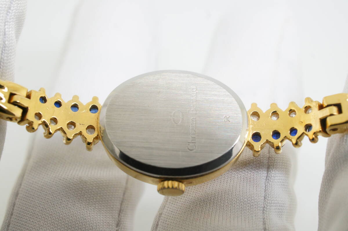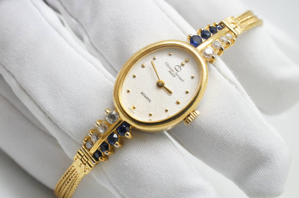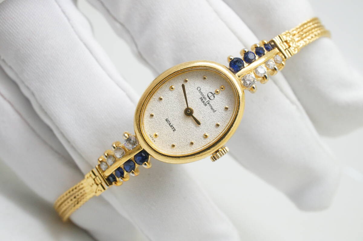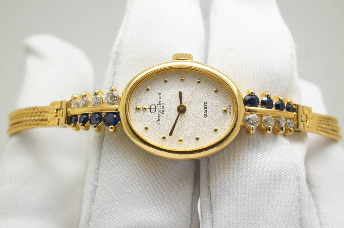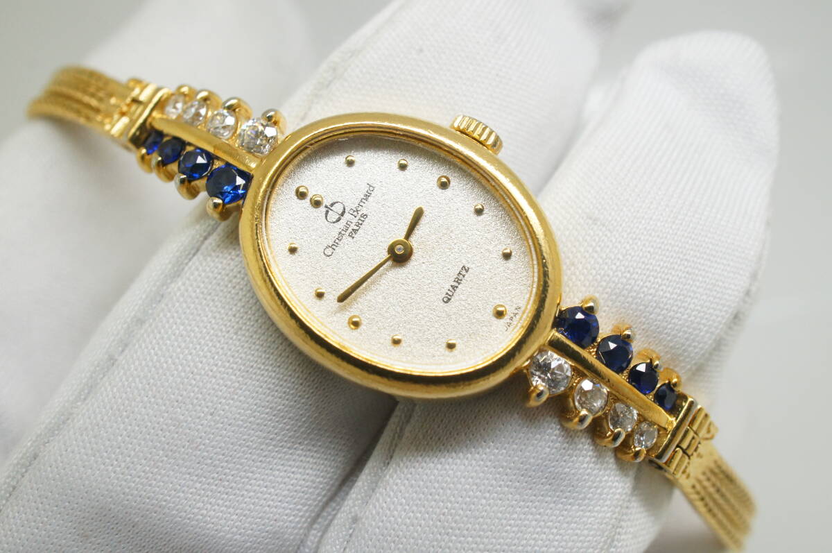 Z18●作動良好 Christian Bernard クリスチャンベルナール オーバル型 ストーン レディース腕時計 ゴールド金 お洒落 クォーツ