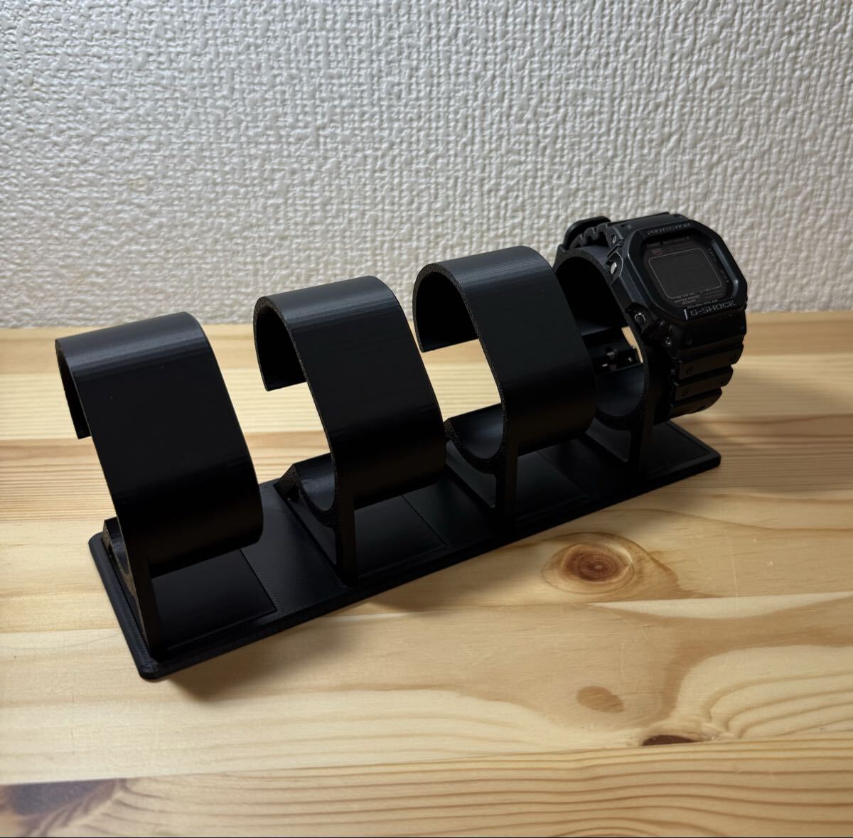 シンプルでスタイリッシュなデザインの時計用スタンドです。耐久性のあるプラスチック素材を使用しており、お気に入りの腕時計をしっかりと支えます。ディスプレイ用や収納用に最適です。