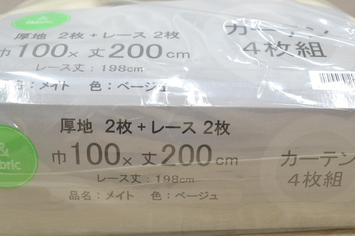 C2588■未使用・長期保管品■カーテン 品名メイト 色ベージュ■幅100㎝×丈200㎝(レース丈198㎝)■厚地2枚+レース2枚(4枚組)