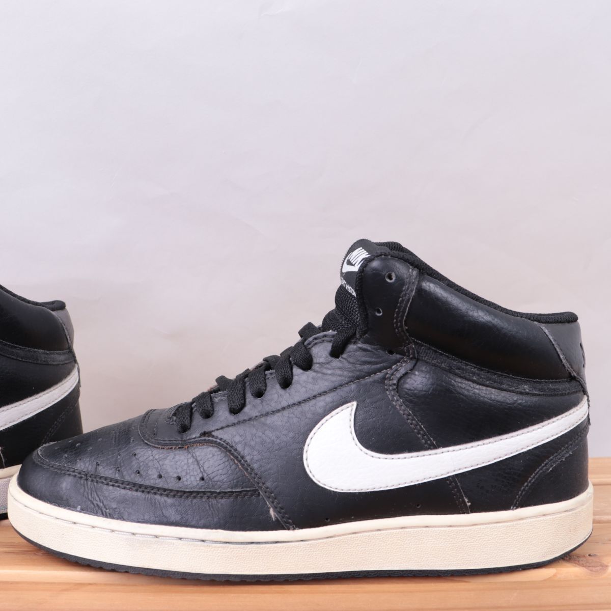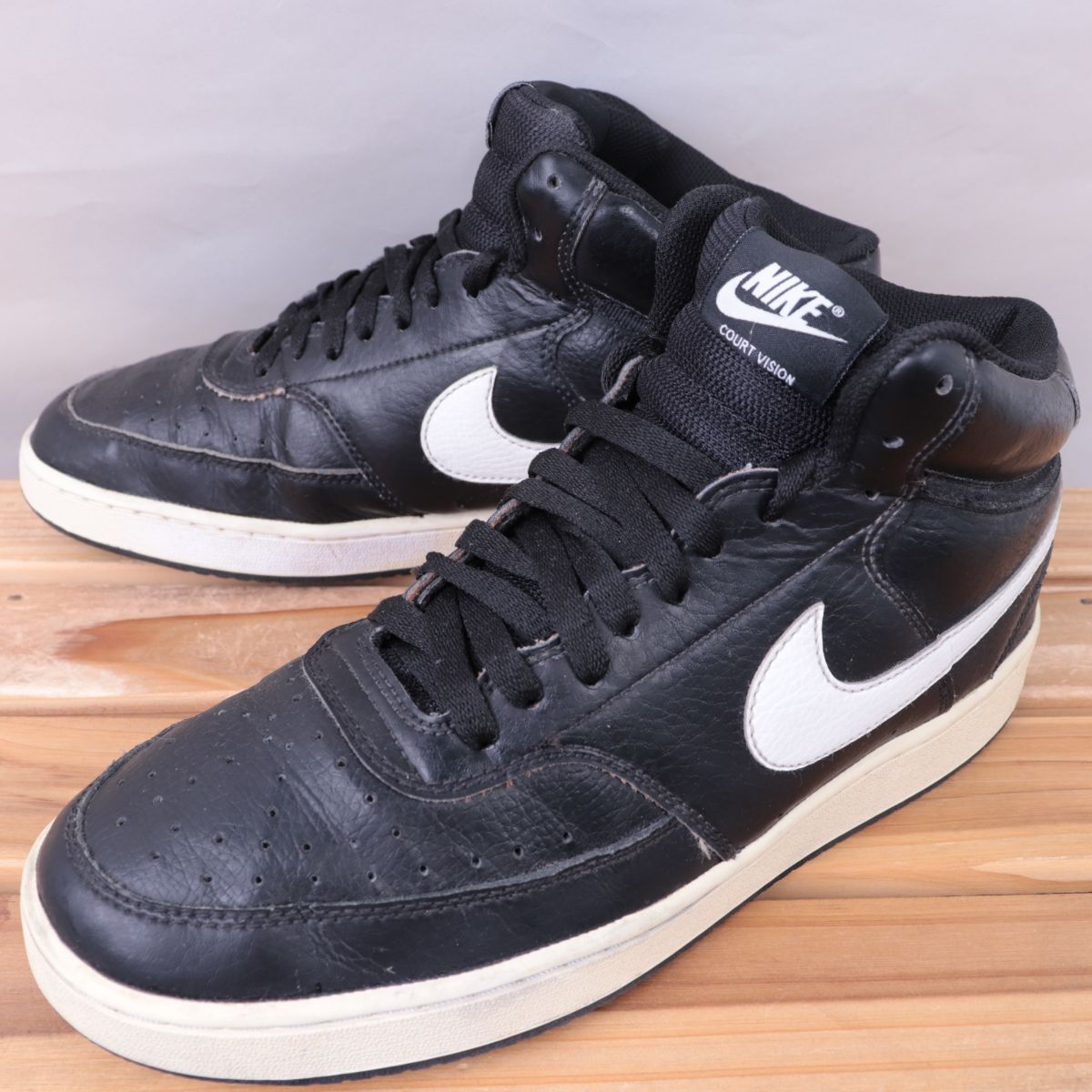 z1808 ナイキ コート ビジョン ミッド US9.5 27.5cm/黒 ブラック 白 NIKE Court Vision Mid メンズ スニーカー 中古