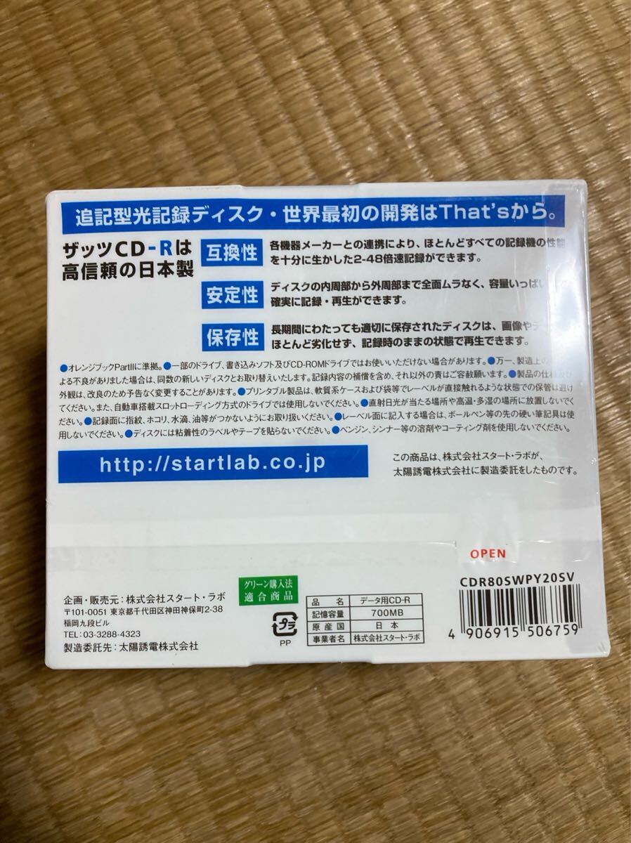 That's 太陽誘電 TAIYO YUDEN CD-R 700MB 20DISCS CDR80WPY20SV ザッツ 20枚 プリンタブル 新品未開封