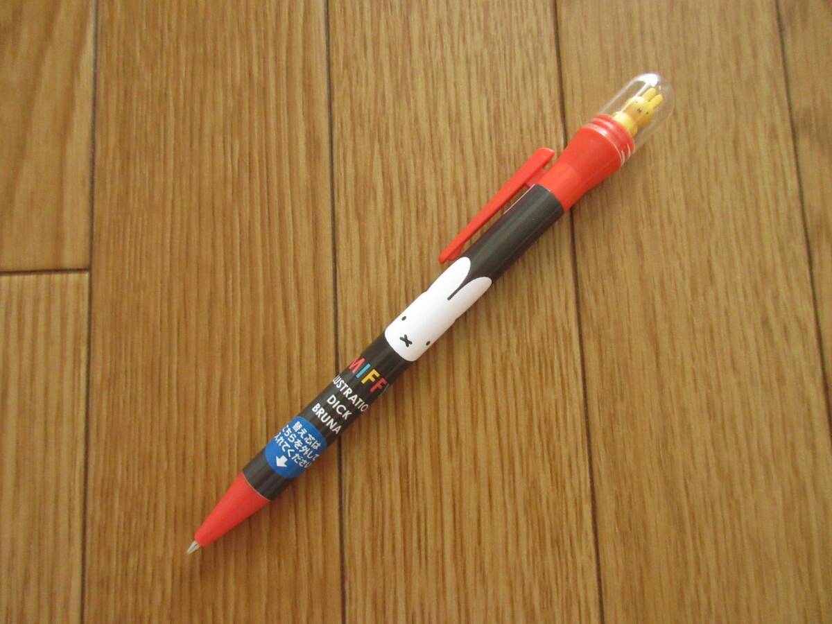ノックを押すとミッフィーがゆっくり回転する楽しいシャープペンです。