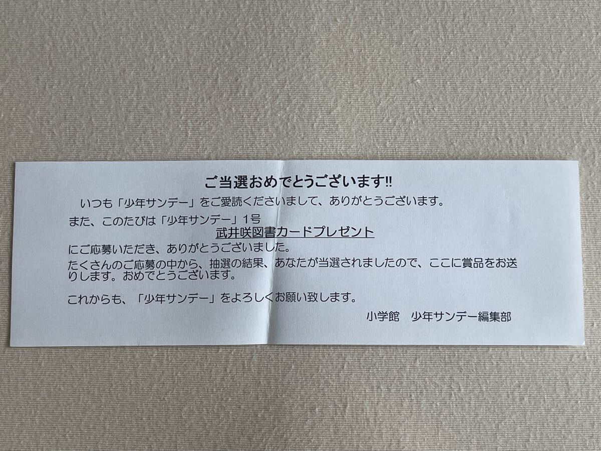 送料無料 レア 武井咲  図書カード 少年サンデー 当選通知書&封筒付き
