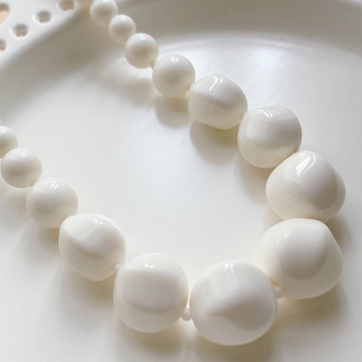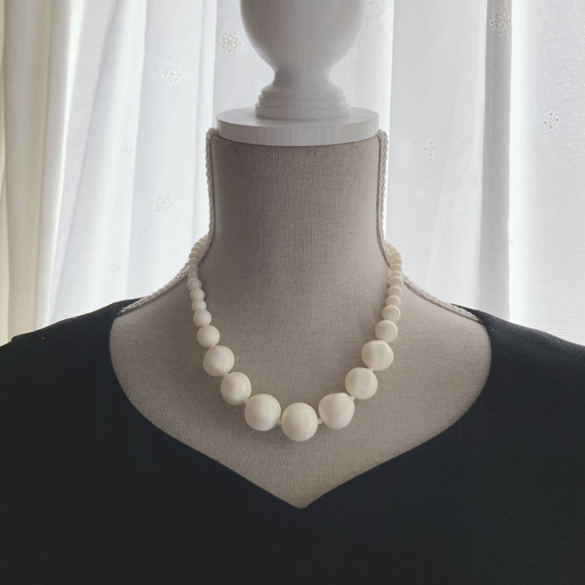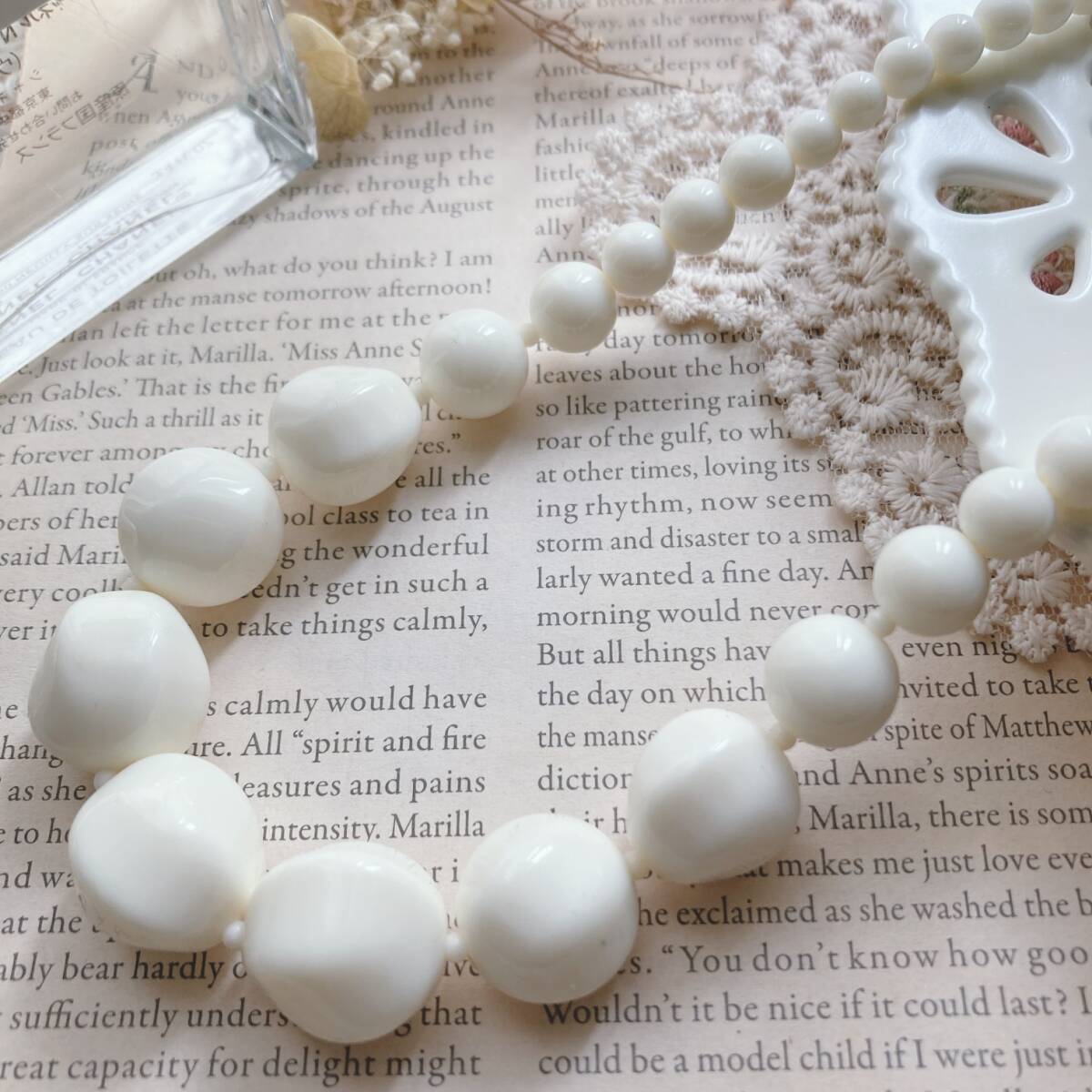 ヴィンテージネックレス ショート ホワイト系 ミルキー 美品 軽量 かわいい☆Vintage jewelry accessoriesk0892
