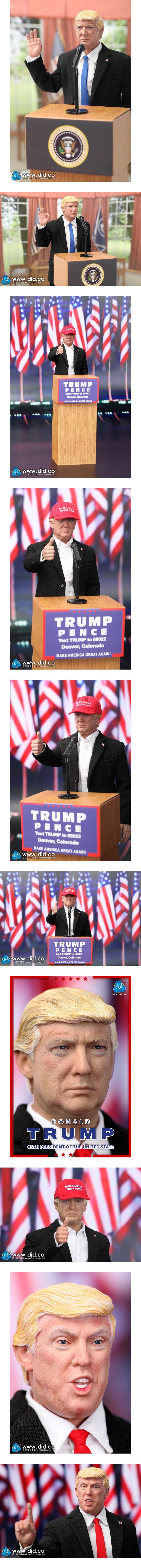 We released the 1/6 scale Donald Trump collectible figure for everyone who like him or not, with TWO stunningly lifelike headculpts, red cap, tailored black suit and podiums for presidential campaign and after elected.
