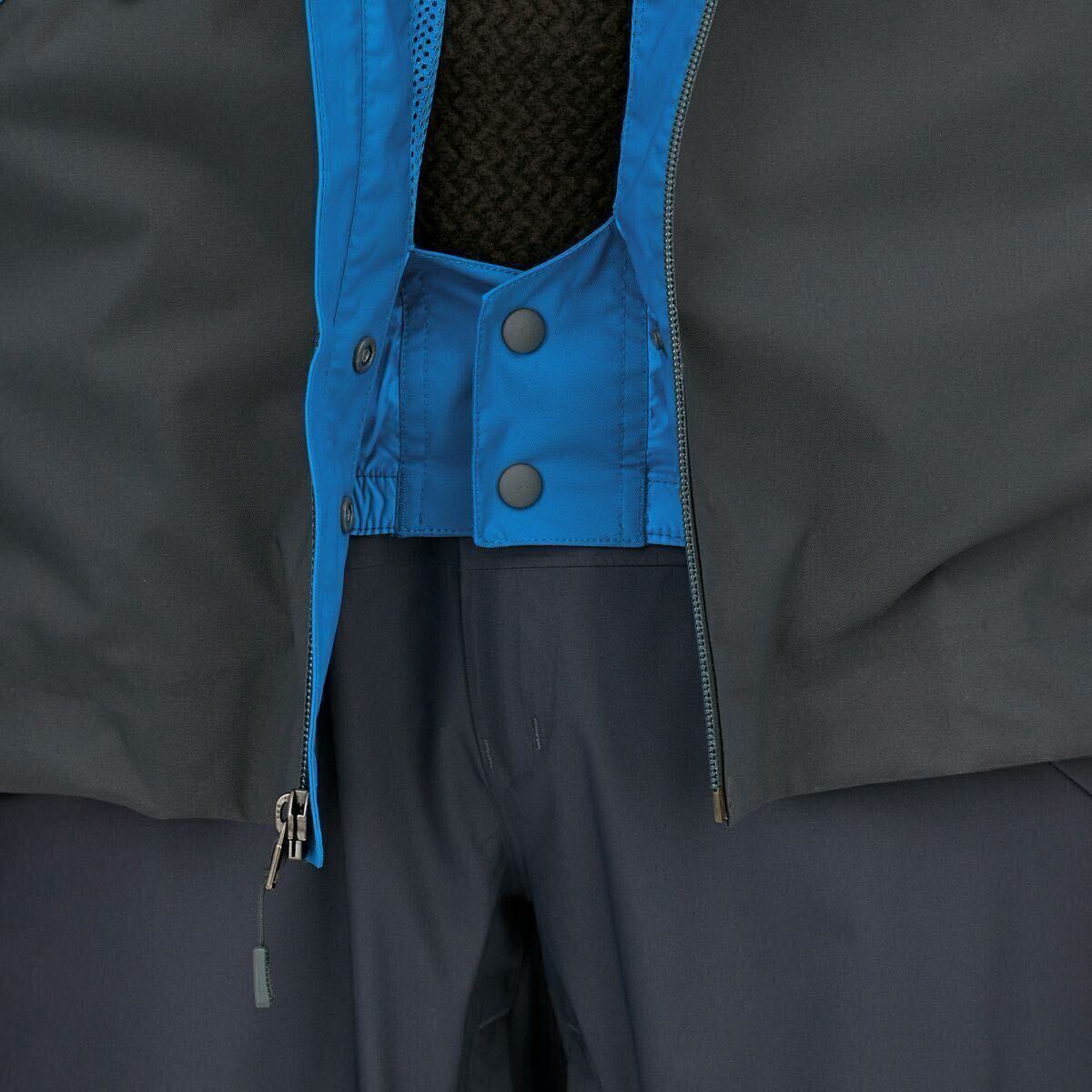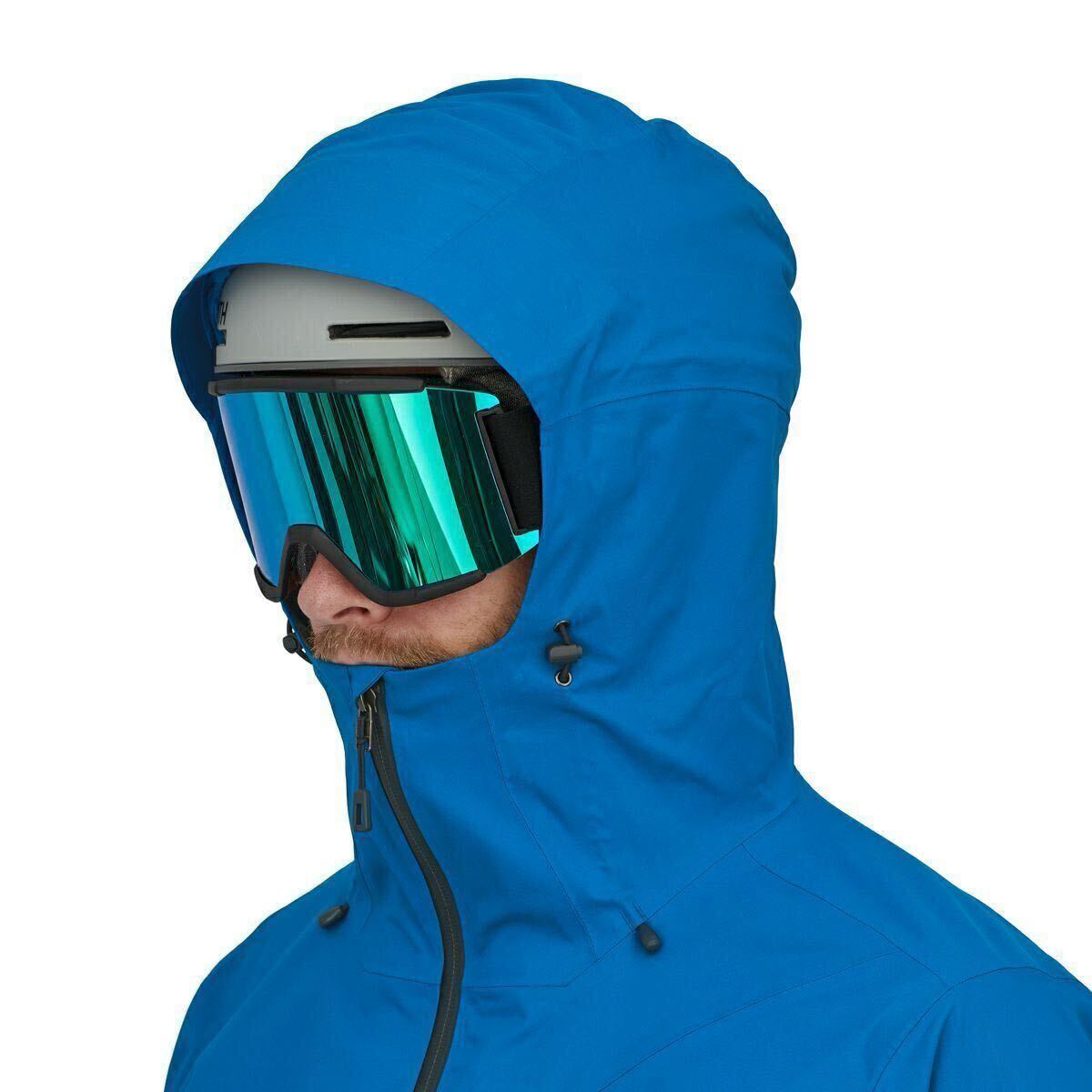 ヘルメットの着用に対応するフードは2通りの方法で調整でき、つばの部分にフォーム入りで悪天候下でも視界を確保。首の後ろ側とあご部分にソフトなマイクロフリースのパネル付き。高めの襟は雪の浸入を遮断