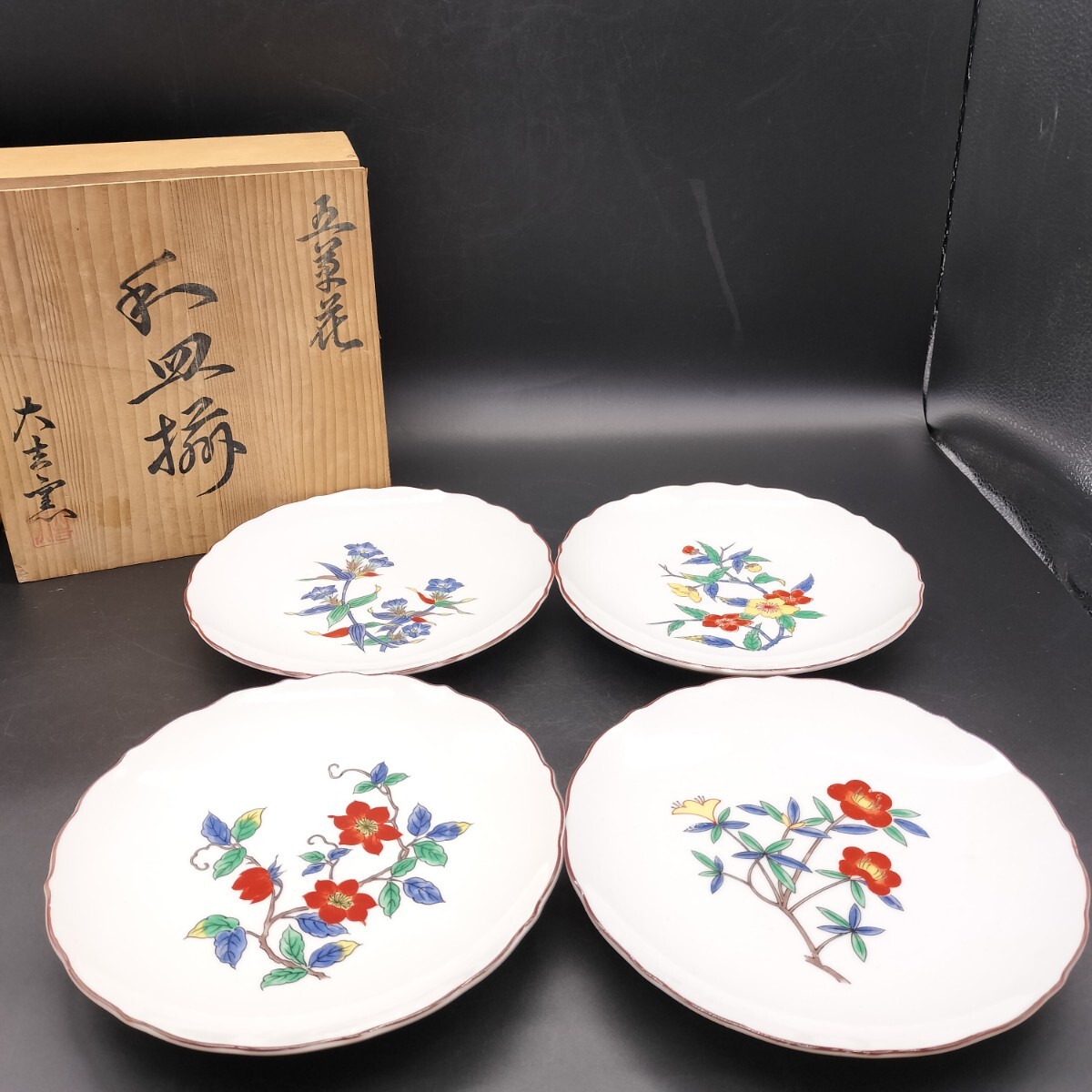 有田焼 和皿揃 大吉窯 花草絵 銘々皿 中皿 和食器 花柄 チ16