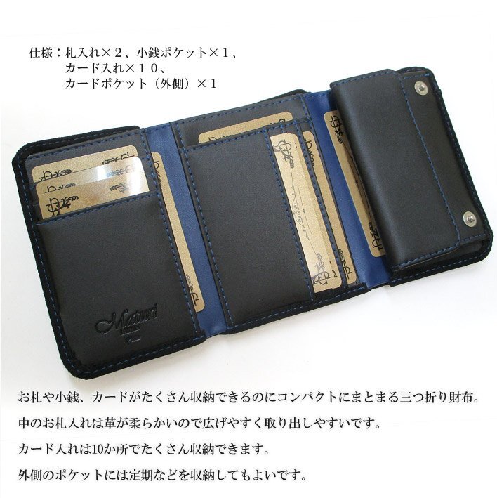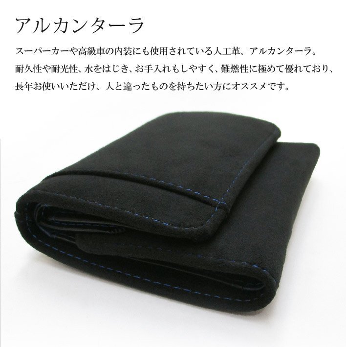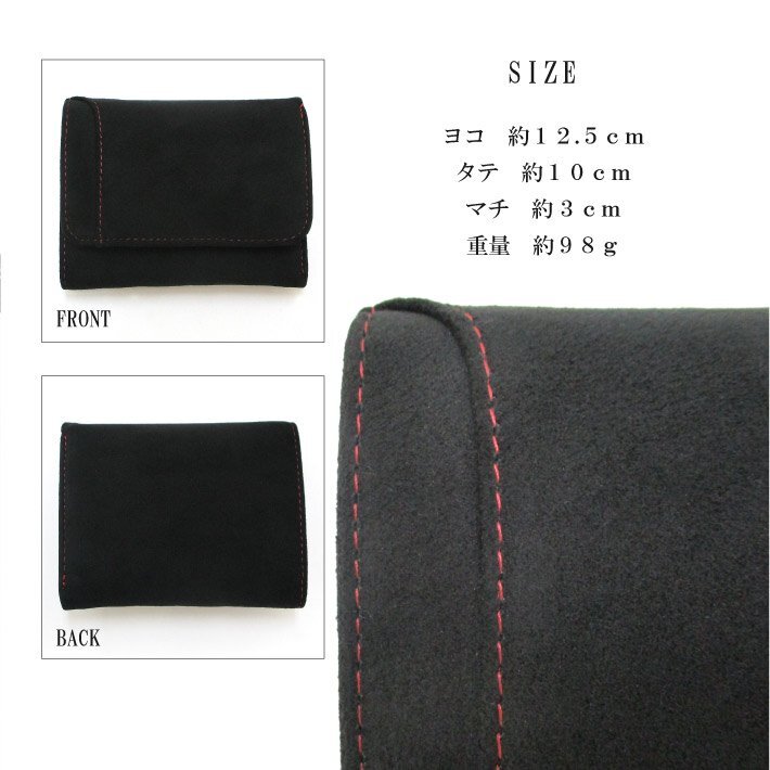 | お札や小銭、カードがたくさん収納できるのにコンパクトにまとまる三つ折り財布。 中のお札入れは革が柔らかいので広げやすく取り出しやすいです。カード入れは10か所でたくさん収納できます。 外側のポケットには定期などを収納してもよいです。 アルカンターラ生地で触り心地が良く、高級感があります。 表側の素材は、スーパーカーや高級車の内装にも使用されているアルカンターラという、クルマ好きには高級内装素材として知られている人工革です。 スエードに似た高級感ある見た目ですが、より耐久性や耐光性、水もはじきやすく、難燃性が極めて優れていると同時に肌触りの良い素材です。 液体の吸収力が低く、水に濡れても乾けば元通りの風合いを取り戻します。汚れ落としが簡単です。 耐久性に優れているので長年お使いいただけます。人と違ったものを持ちたい方にオススメです。 誕生日プレゼント・クリスマス・バレンタイン・父の日・母の日などの贈り物にも最適です。 ■カラー:BK/BL(ブラック×ブルー)/BK/RD(ブラック×レッド)/LBL/BK(ライトブルー×ブラック)/PK/RD(ピンク×レッド)よりお選び下さい。 (落札時、オーダーフォームにてご希望のカラーをご連絡下さい。ご連絡を頂けない場合、当店で選択させて頂きます。) ■素材:外側 アルカンターラ、内側 牛革 ■サイズ(約):横12.5cm×縦10cm×マチ3cm ■重量:約98g ■仕様:札入れ×1、小銭ポケット×1、カード入れ×10、カードポケット(外側)×1 ※一部共通画像使用 ※ご注意※革は自然が造り出した理想的な繊維です。 自然由来の素材のため革には細かなシワや傷跡・トラ等が存在する場合があります。 これらは本革である証拠であり、革本来の特長であり、魅力でもあります。 ※新品ではございますが製造上の過程により商品によっては細かな傷やへこみ、剥げ等がある場合が御座います。 また、多少の縫製のゆがみ・ノリの付着がある場合がございます。 ※ご覧のモニターやプラウザの設定、照明等により、画像と実物の色合いが、若干異なる場合が御座います。 予めご理解頂いた上でご購入下さい。 | |
