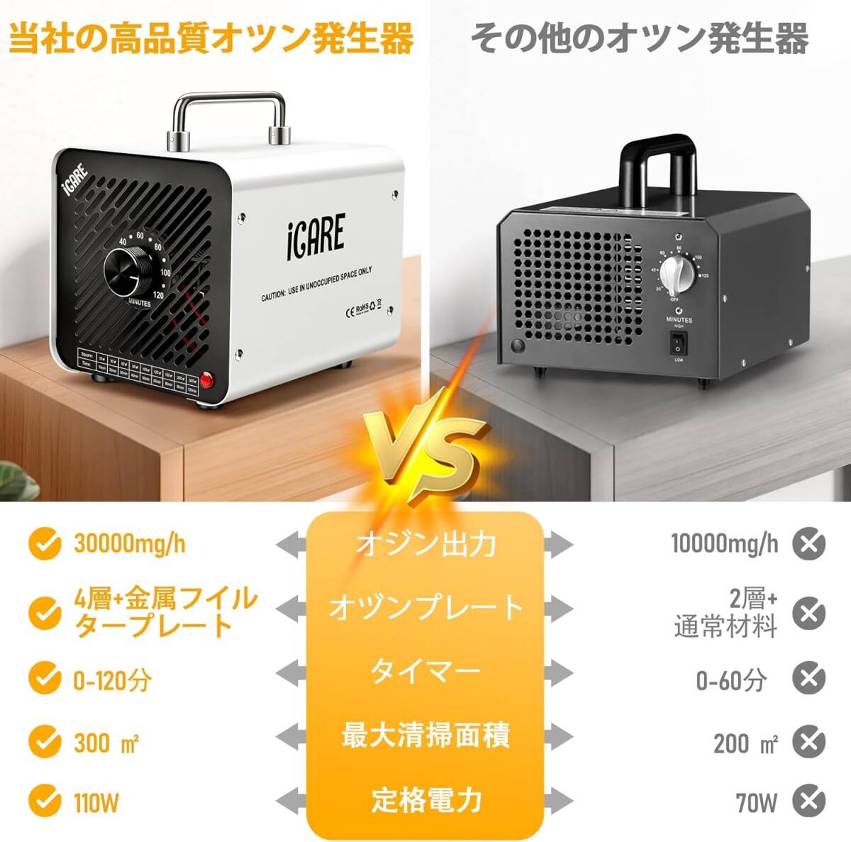◆毎時30,000mgのオゾンを生成し、最大300㎡の広範囲をカバー!