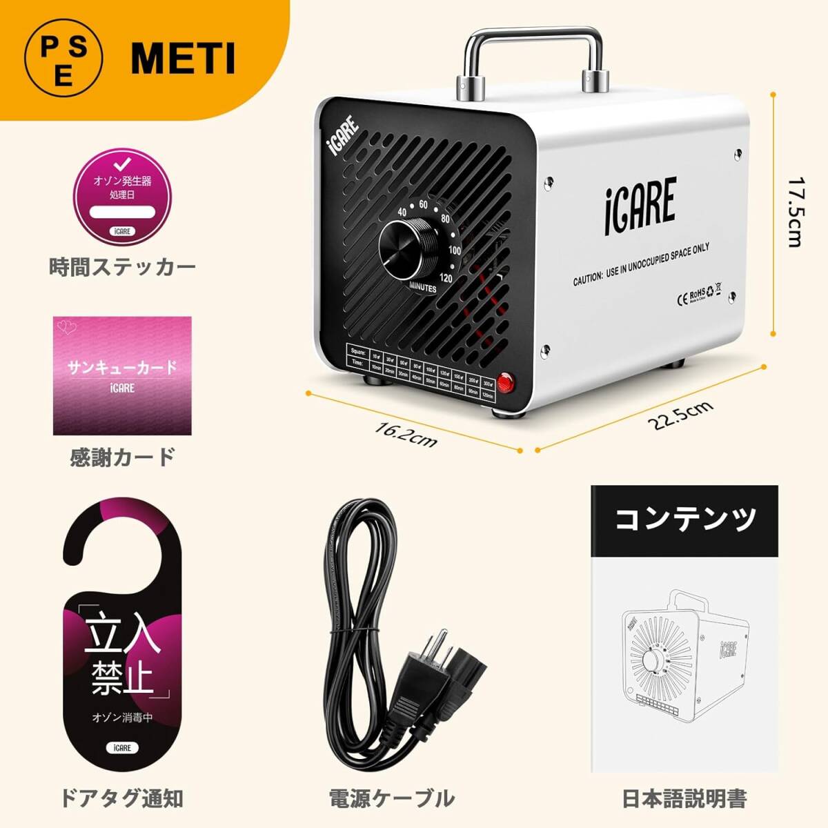 オゾン発生器 業務用オゾン脱臭機 家庭用空気清浄機 PSE認証済 消臭 除菌 日本仕様 電気用品安全法準拠 強力消臭 ホワイト