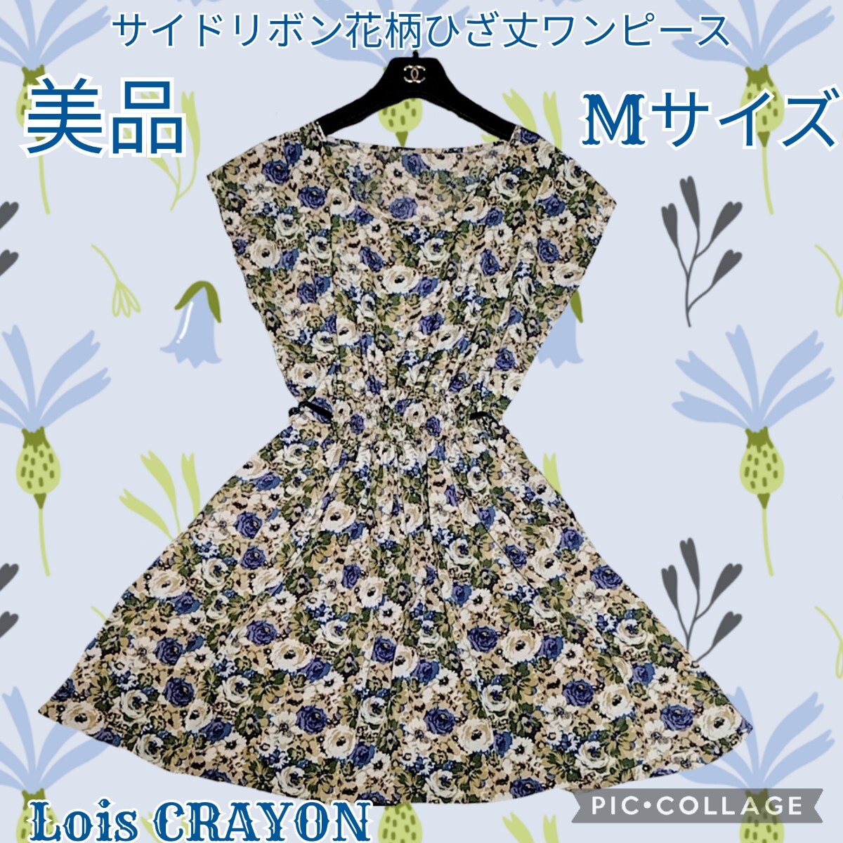 ロイスクレヨンの半袖花柄ベルベットリボン付きひざ丈フレアワンピースになります。