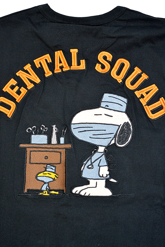 ロウブロウナックルから「ロウブロウナックル×スヌーピー DENTAL SNOOPYロングTシャツ(592404)」のご紹介です。 世界中で愛されている人気アニメ「PEANUTS(ピーナッツ)」とのコラボが実現しました! 今回は歯医者さんに扮したスヌーピーとウッドストックを背中に刺繍しました。 バックにしっかり柄を入れている分、フロントはシンプルに仕上げ、メリハリをつけました。 ボディーには、刺繍に負けないコシのあるTシャツ生地を採用。 | ||||||||||||||||||||||||||