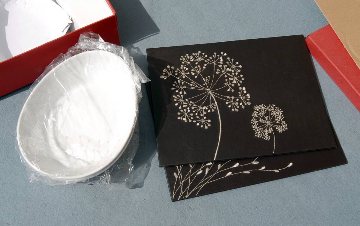 マット 21.5×28cm 厚さ約4mm 刺繍がしてある合成皮革のような感じです。
