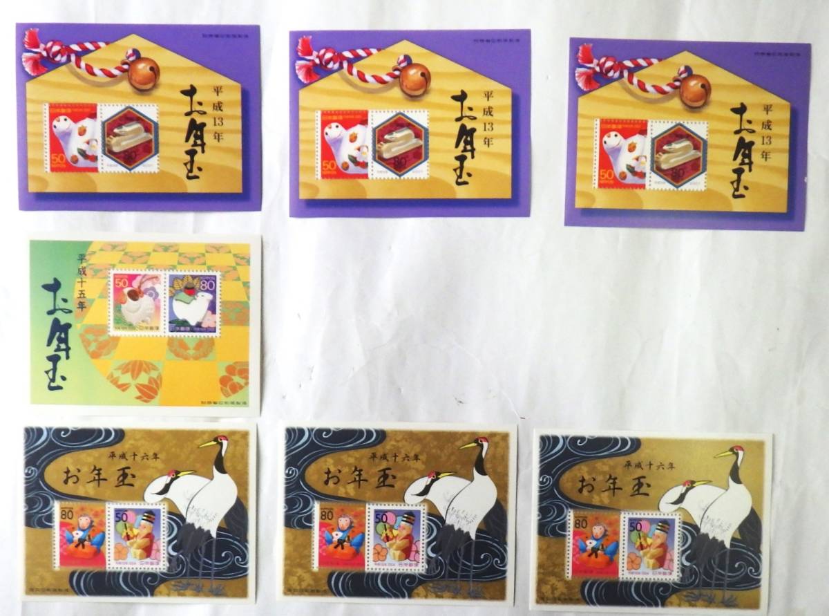 | 未使用の日本年賀切手シートで、平成13・15・16年度のシートです。 |
