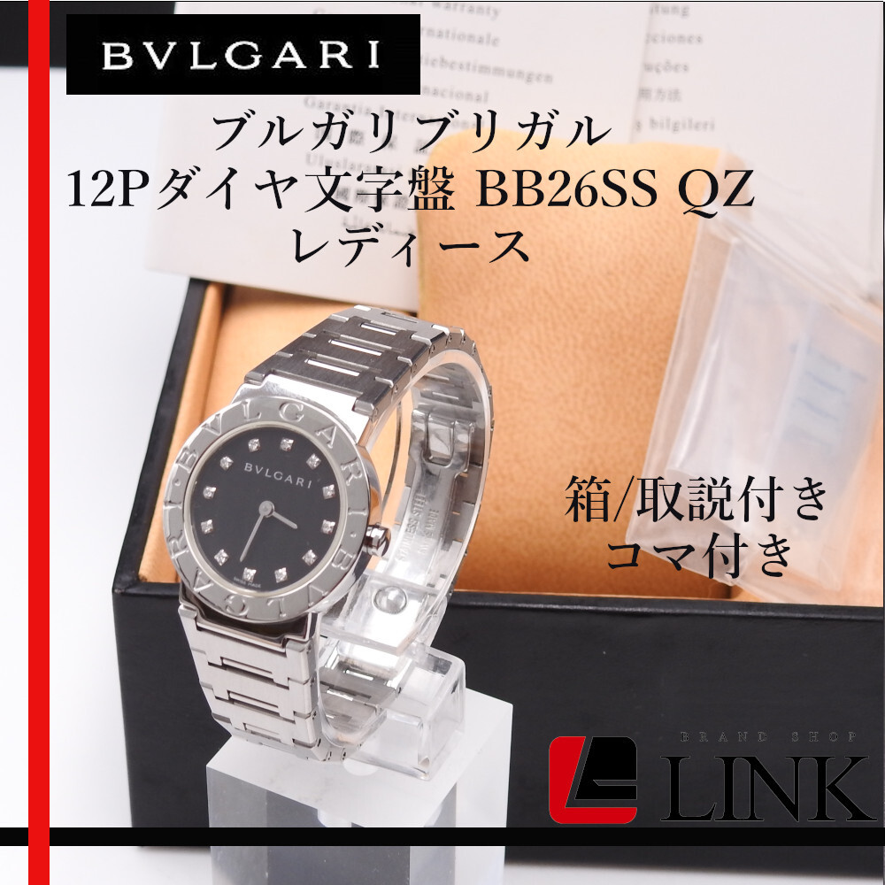 【正規品】BVLGARI(ブルガリ)ブルガリブルガリ 12Pダイヤ黒文字盤 BB26SS QZ レディース 腕時計