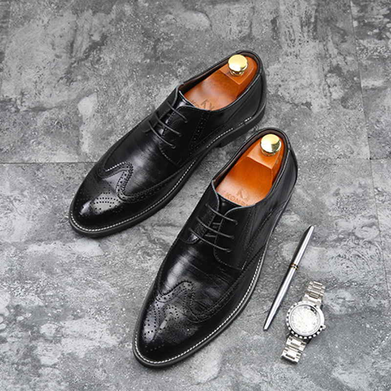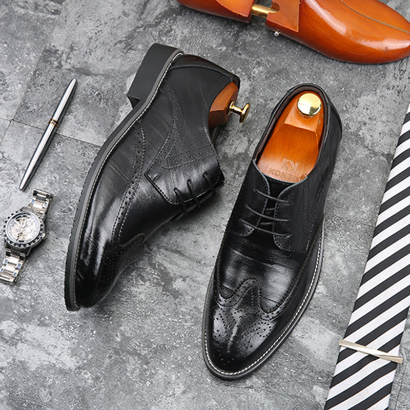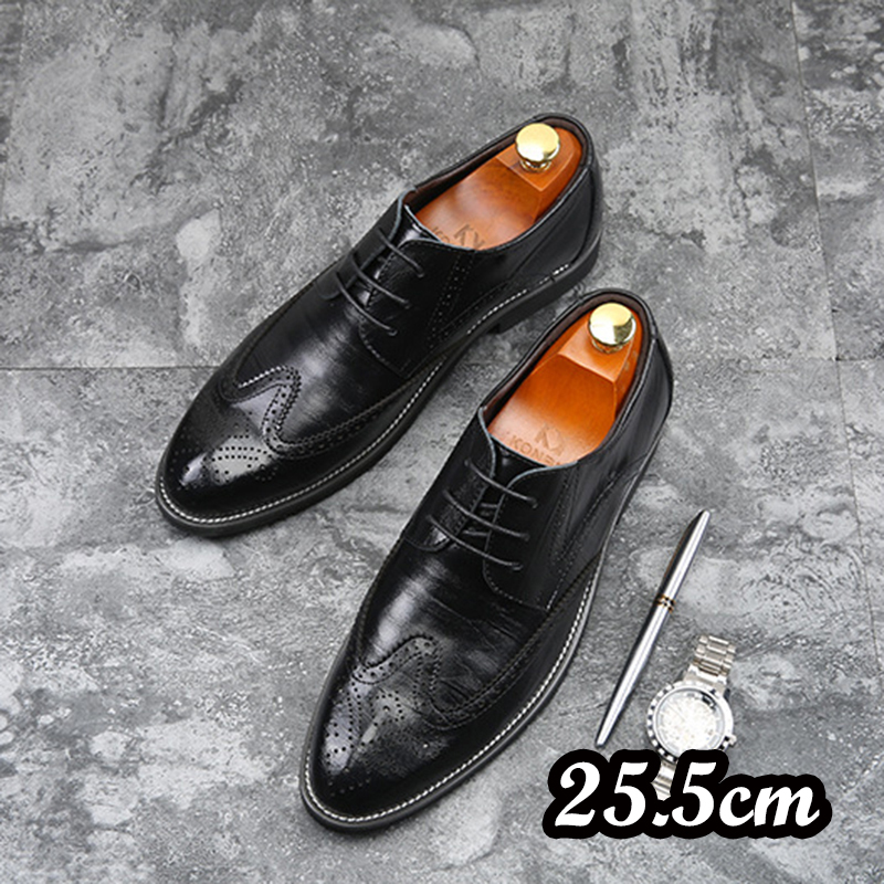 ☆メンズシューズ ビジネスシューズ 男靴 紳士靴 就活 革靴 PU革 イギリス風 ウイングチップ レスアップ 走れる 通勤学 25.5cm