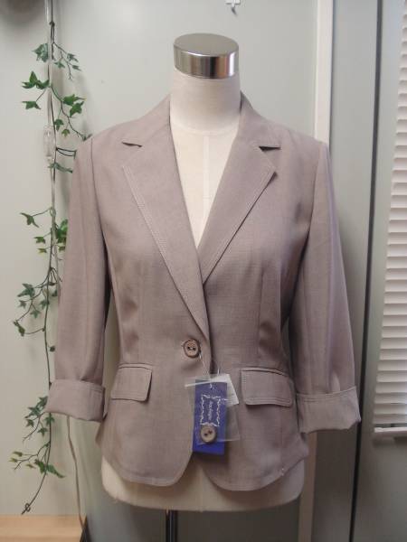 サラッとした爽やかな素材感と落ち着いたお色みが上品な、定価15,000円程のジャケットとなっております。
