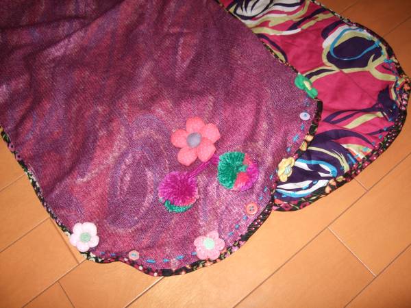 美品即決○セレクト系お花モチーフ付ダブルフェイスマフラー
