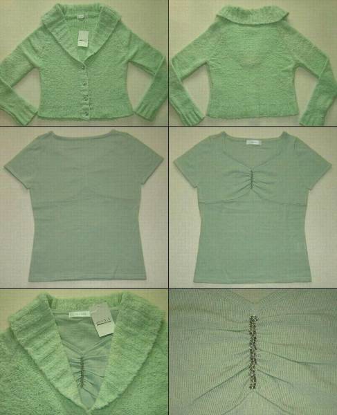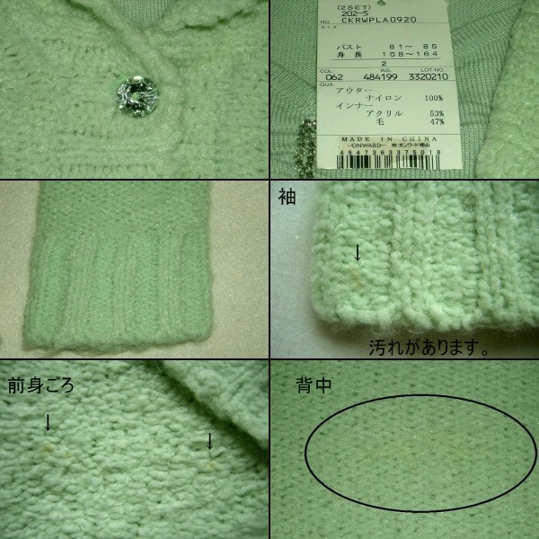 タグ付き・未使用ですが、カーディガンの身ごろ・背中袖に汚れがあります。写真以外にも汚れがあると思います。