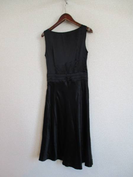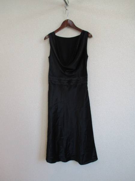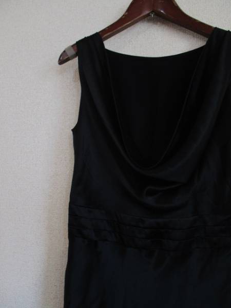| 商品紹介 | 黒のノースリーブワンピース、ドレスです。 胸元のドレープがデザインのポイントになっています。 《素材》 表地:シルク100% 裏地:キュプラ100% |