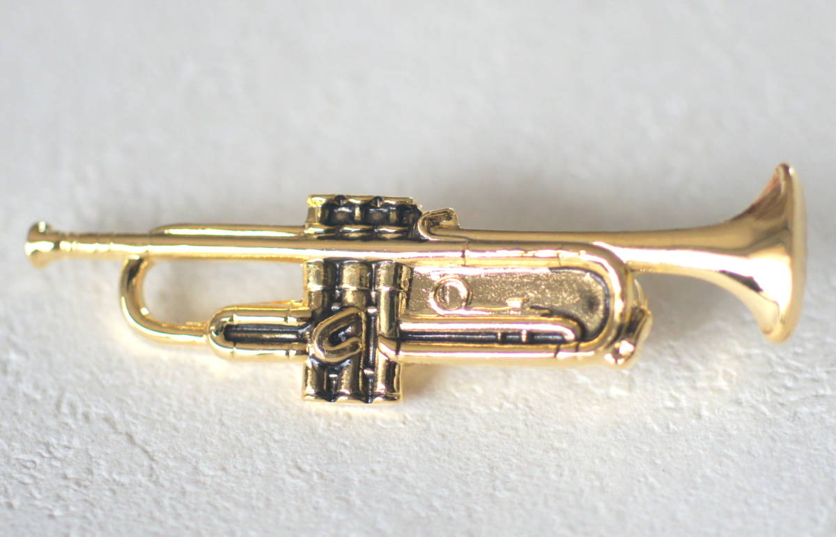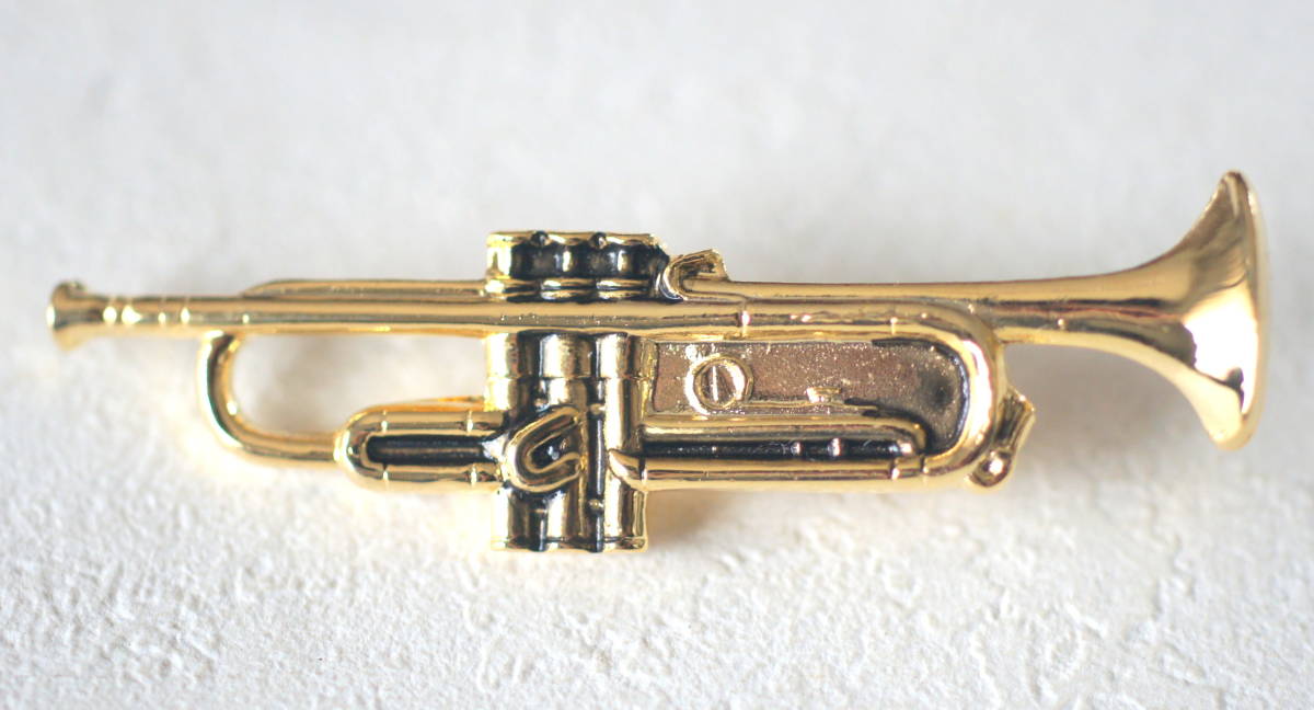 未使用 楽器ブローチ トランペット ゴールドカラー 日本製