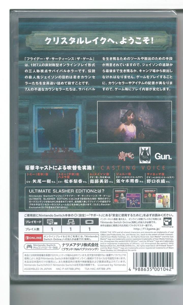 | ●JANコード4988635001042 n3 ☆Switch フライデー・ザ・サーティーンス:ザ・ゲーム/ULTIMATE SLASHER EDITION 日本語版 【CEROレーティング「Z」】 外装不良 ●商品の状態 新品未開封、包装されたままの状態ですが、包装・ケースにスレ・イタミがあります。 |