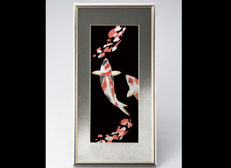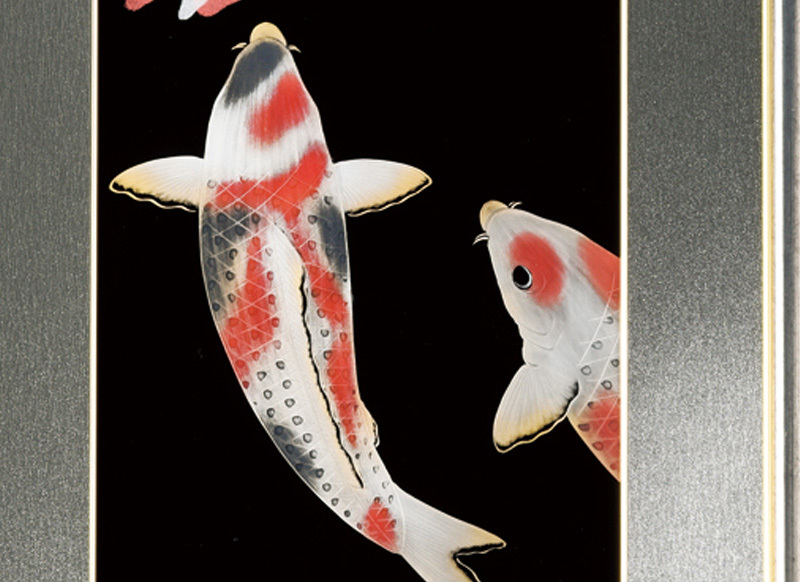 《只今!20%値下げ中》濱田屋【創作漆器】日展作家 冨田立山作 越前塗 彩り鯉 パネル
