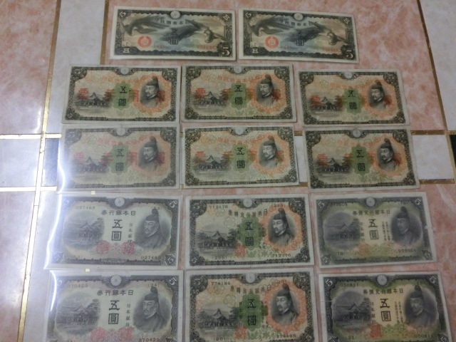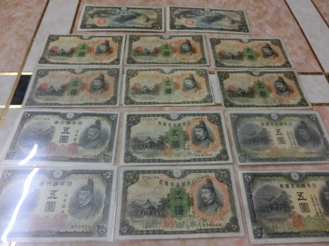 ★ 1次5円・2次5円・3次5円・日華事変軍票 戊号5円・丙号5円 5種14枚セット ★ No.555