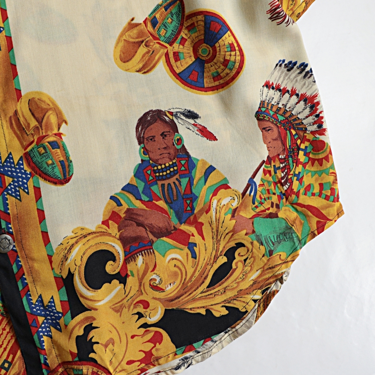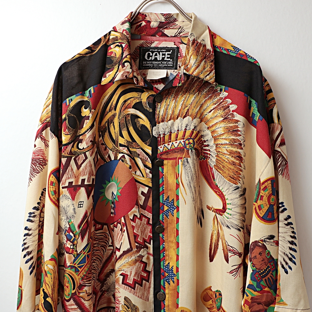 80-90s CAFEのインディアン柄レーヨンシャツです。
