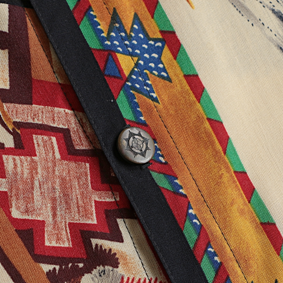 珍しいインディアン柄。色鮮やかなネイティブモチーフとコンチョボタン仕様。