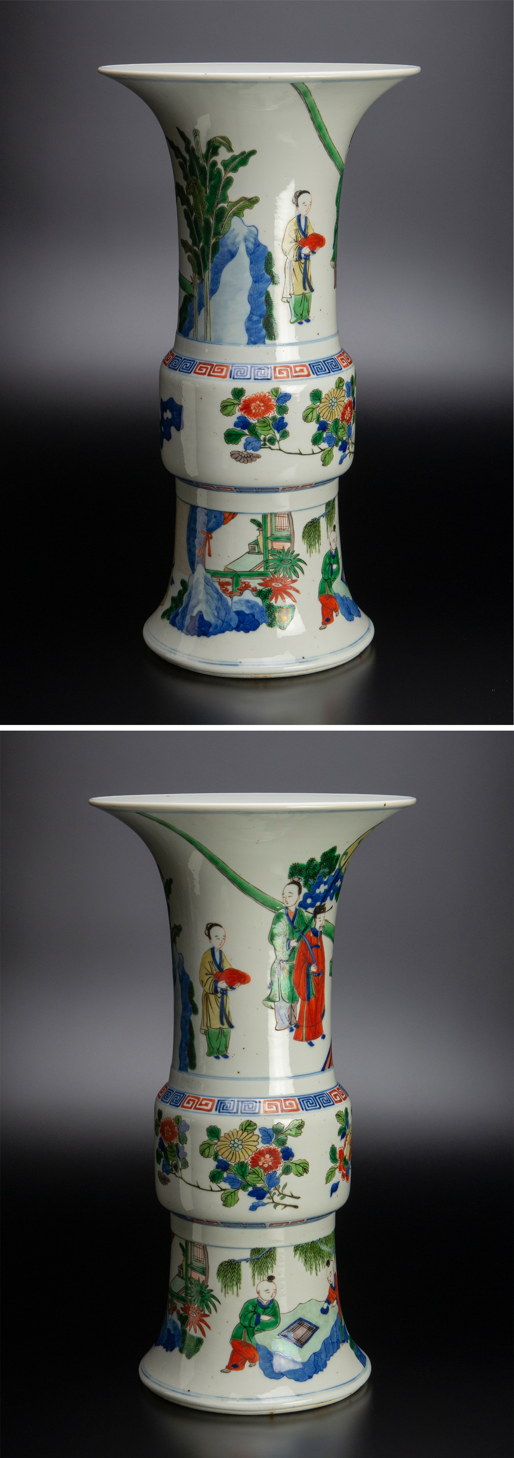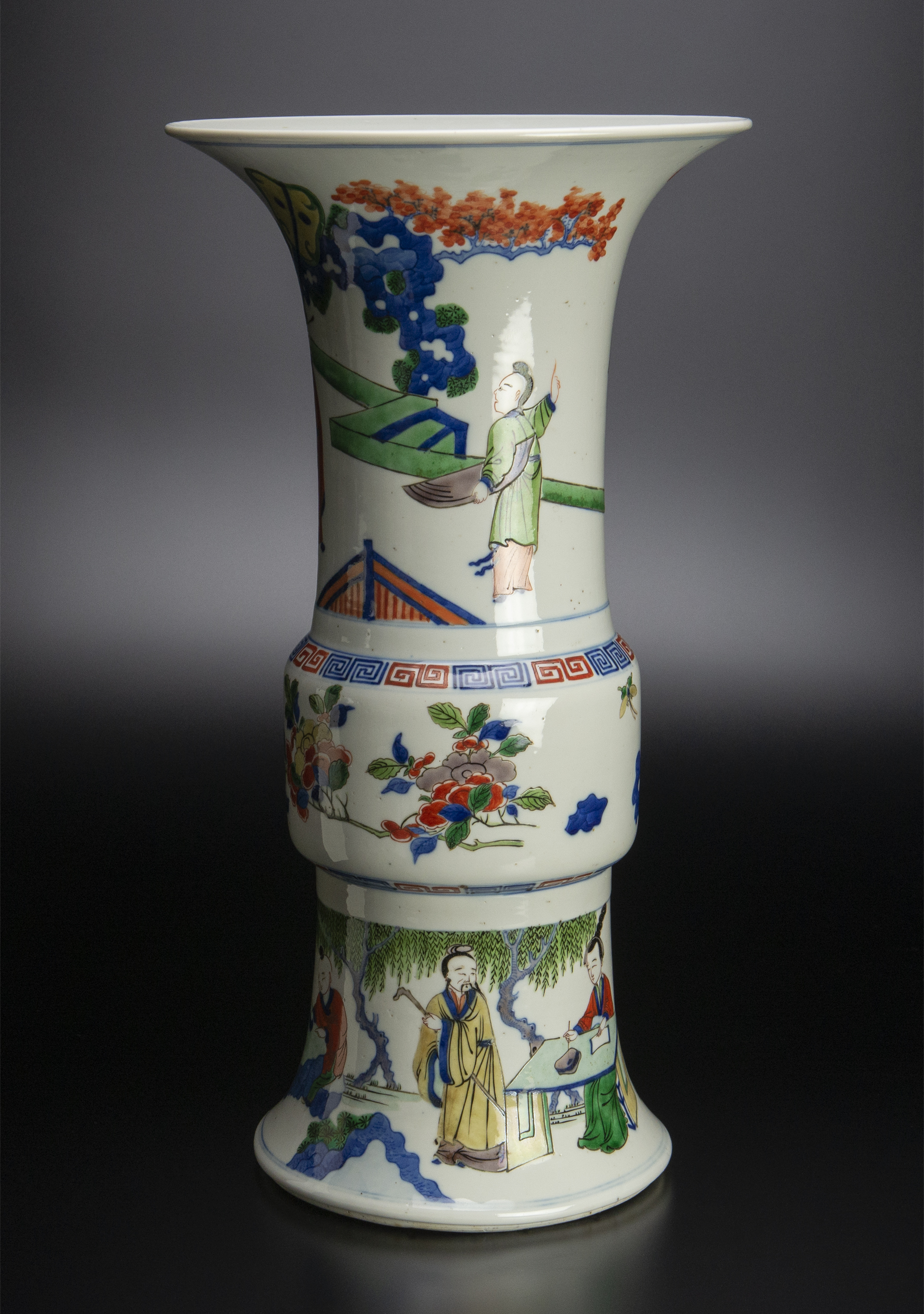 清 康熙 五彩人物故事花觚 共箱 中国 古美術