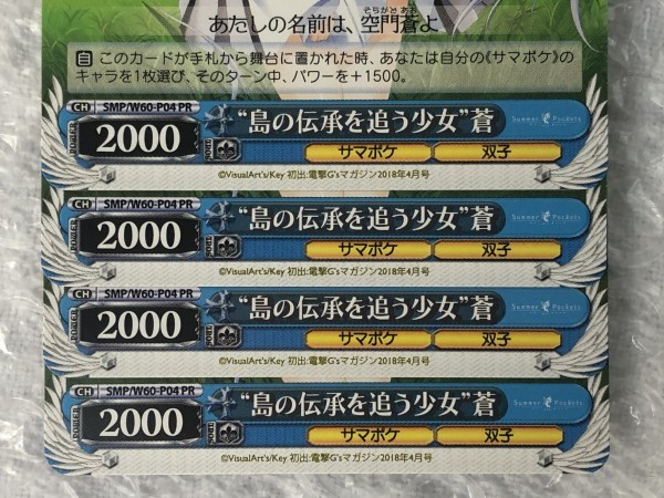 ◆ ヴァイス 【 PR 】 “島の伝承を追う少女”蒼 4枚 セット [ SMP/W60-P04 ] PCソフト同梱特典 Summer Pockets サマポケ ws Weiss Schwarz