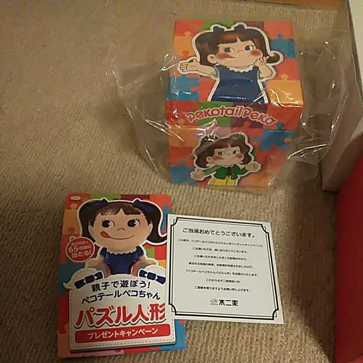 ペコちゃんのフィギュア(陶器)は、ファミリークラブで貰った物で、ペコテールペコちゃんパズル人形は、以前当選した未開封品になります。