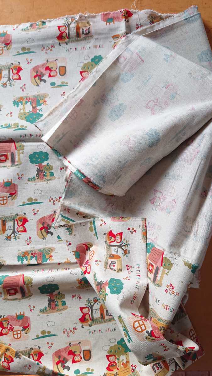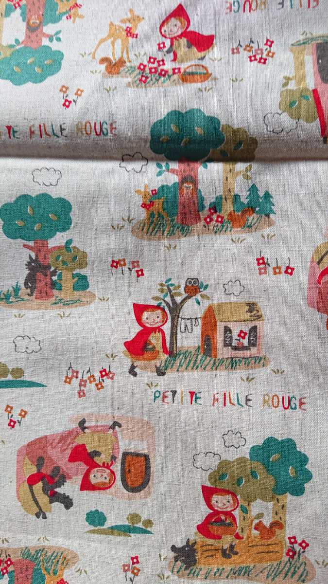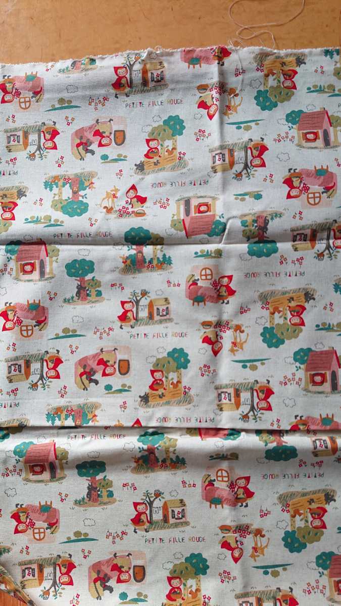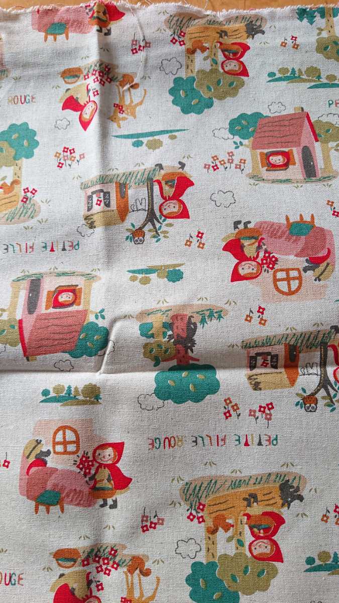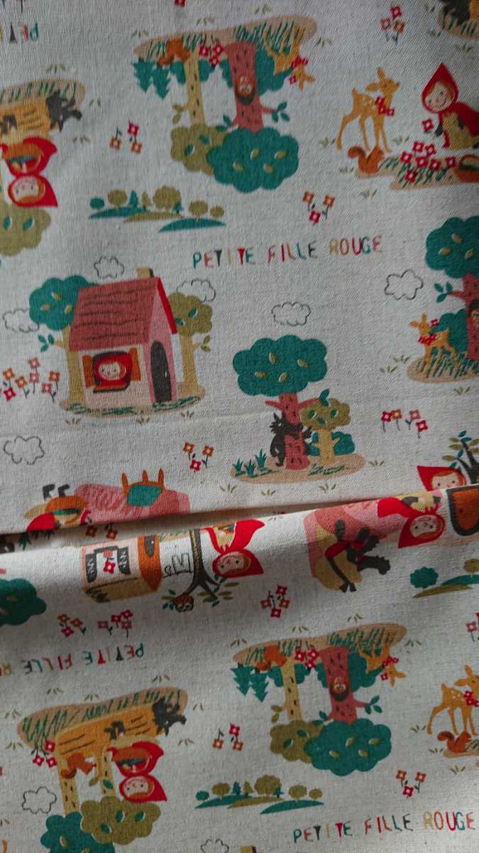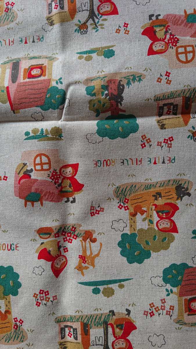赤ずきんちゃん柄の布です。サイズは幅110cm、長さは186cmになります。多少の誤差はご了承ください。