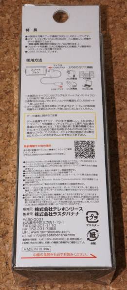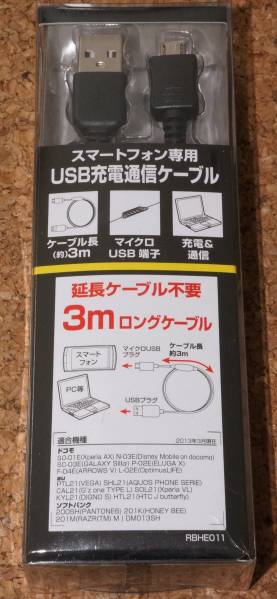 RASTA BANANA マイクロUSB 充電通信ケーブル 3m 新品・未使用です。
