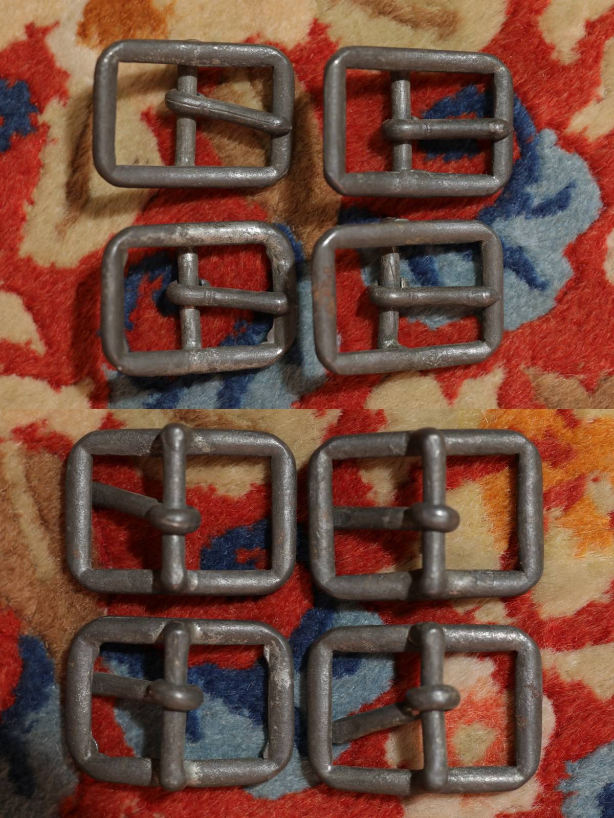 頭絡の頬革、大勒等に用いる尾錠。鋼製亜鉛メッキ。兵器特有の太くごつい必要十分な強度あり。