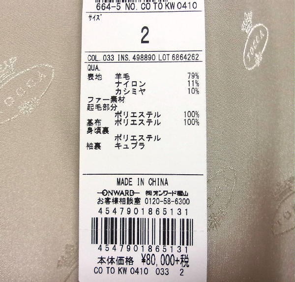 | ◆TOCCA(トッカ)のVANILLA コート新品です。 カシミヤビーバーのフェミニンな素材を使用したフード付きのコートです。シンプルなローブ風のデザインに、フェイクファーをトリミングしました。前を閉じてきっちりと着ても、前を開けて軽く羽織るのも。 左サイド下部と袖口周辺に僅かな汚れがあります。画像8枚目参照して下さい。品質タグにカットがあります。ご理解の上、ご入札をお願いいたします。 定価は¥80.000+税です。 表記サイズ 2 実寸サイズ 肩幅:37cm 身幅:47.5cm 着丈:108cm 袖丈:60cm ※すべて平置きにして採寸しております。 採寸は参考程度とさせていただきます。 カラー ベージュ系 素材 ・表地 羊毛79% ナイロン11% カシミヤ10% ・ファー部分 起毛部分 ポリエステル100% 基布 ポリエステル100% ・身頃裏 ポリエステル 袖裏 キュプラ |