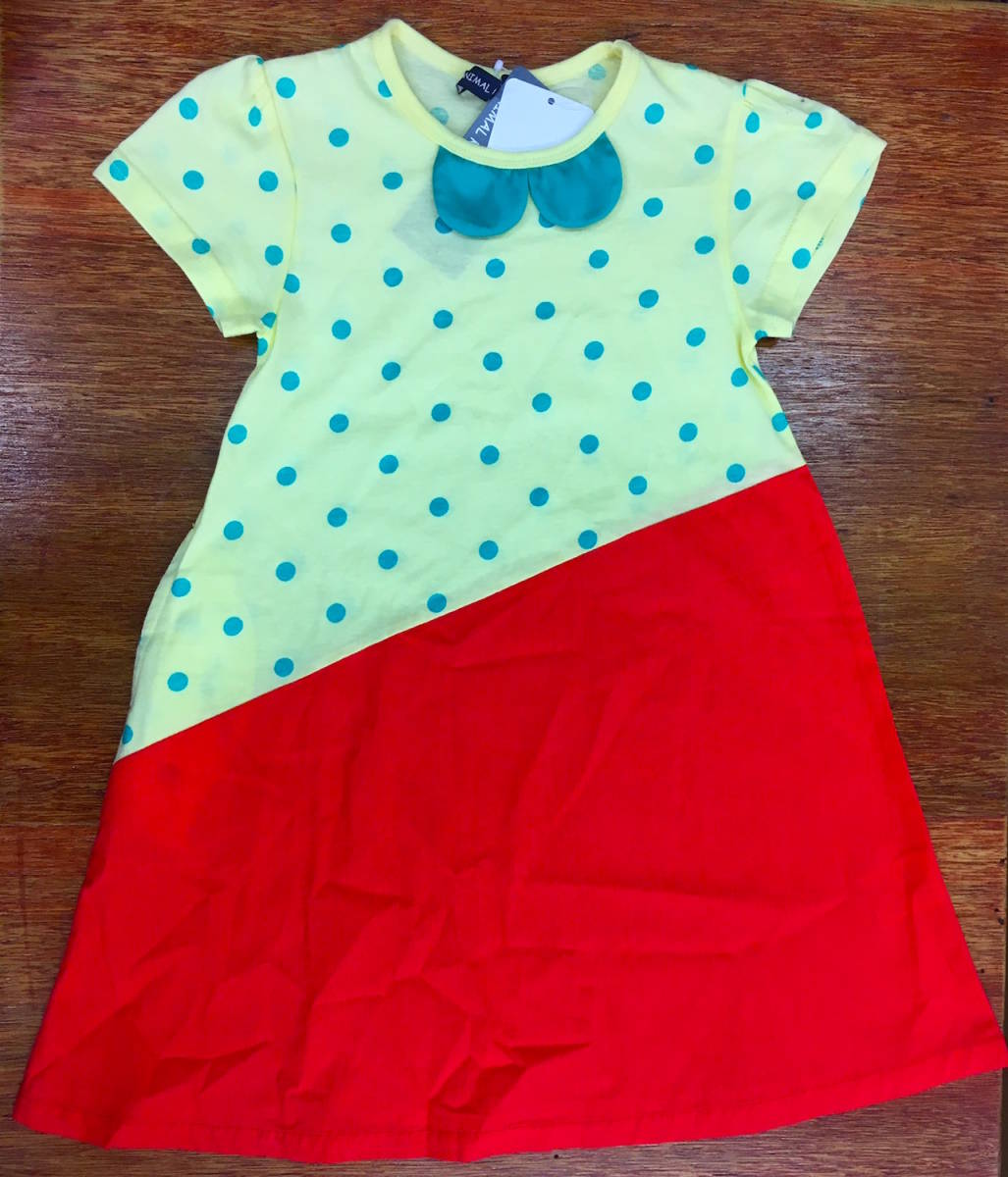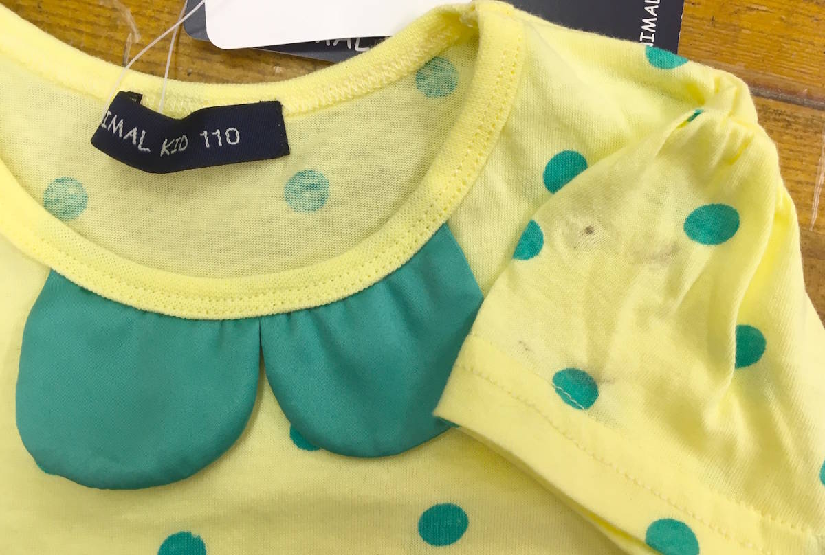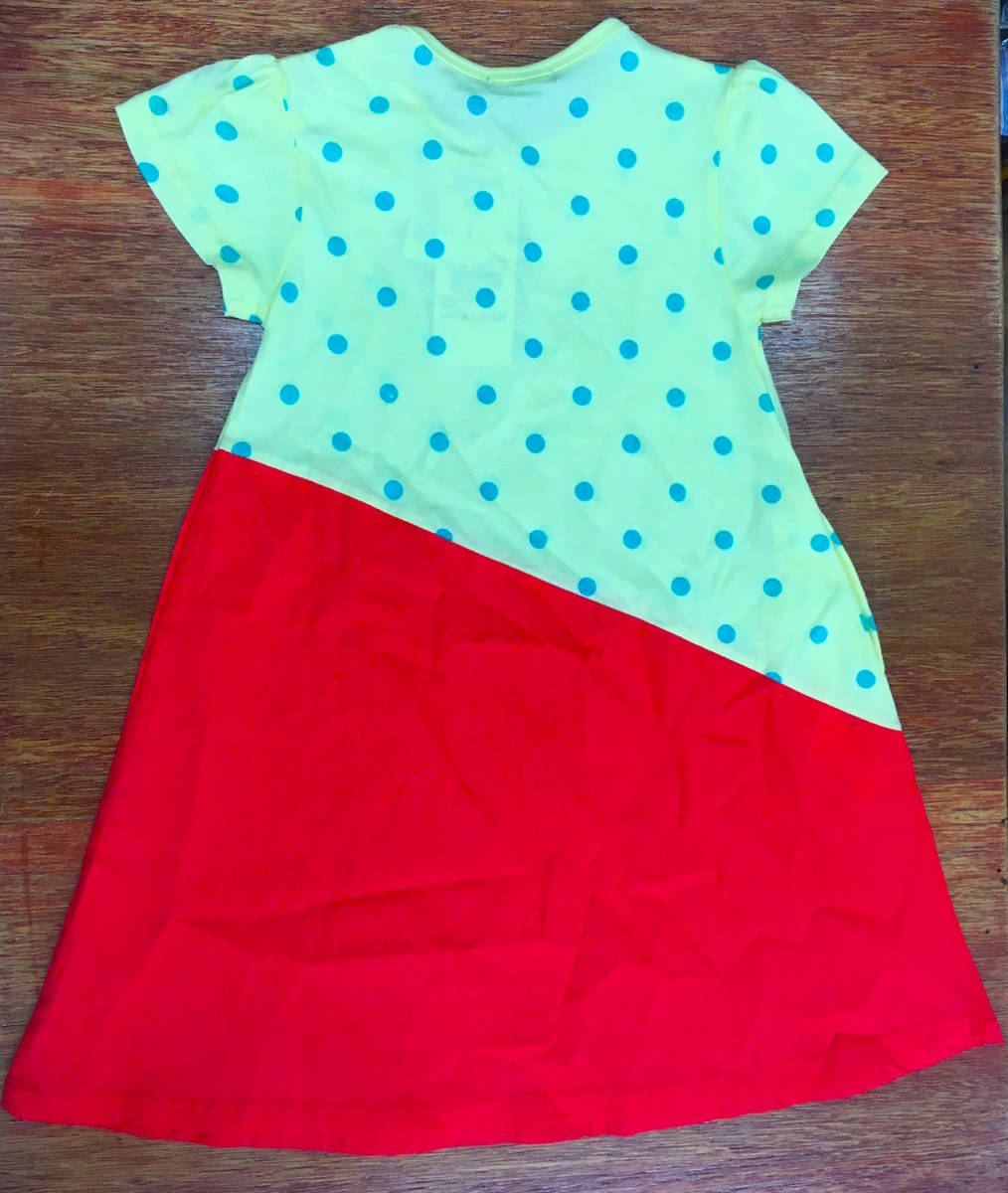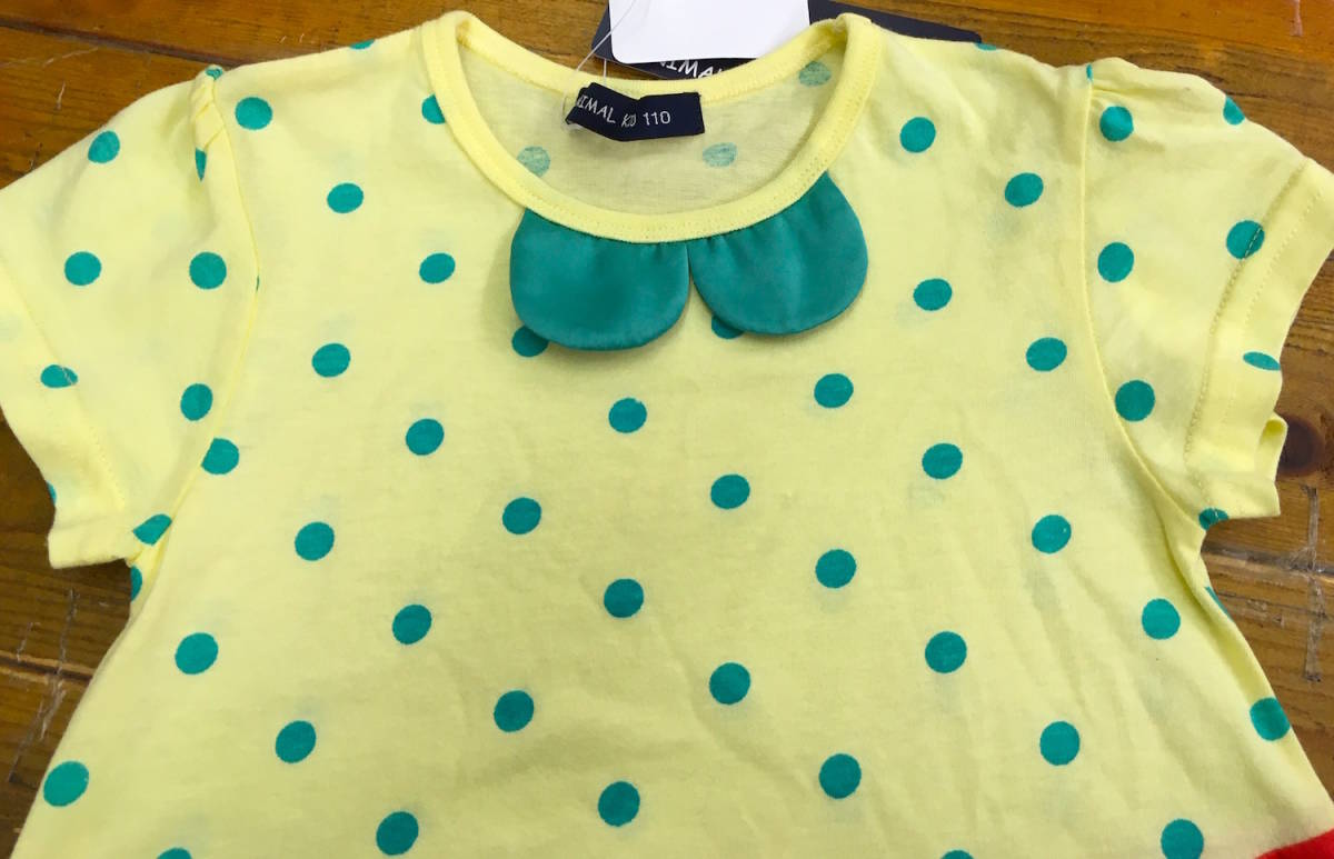 B品処分! 新品タグ付 ANIMAL KID アニマルキッド 女児★水玉切り替え★スイカの半袖ワンピース★110cm/5-6才目安 ¥1650