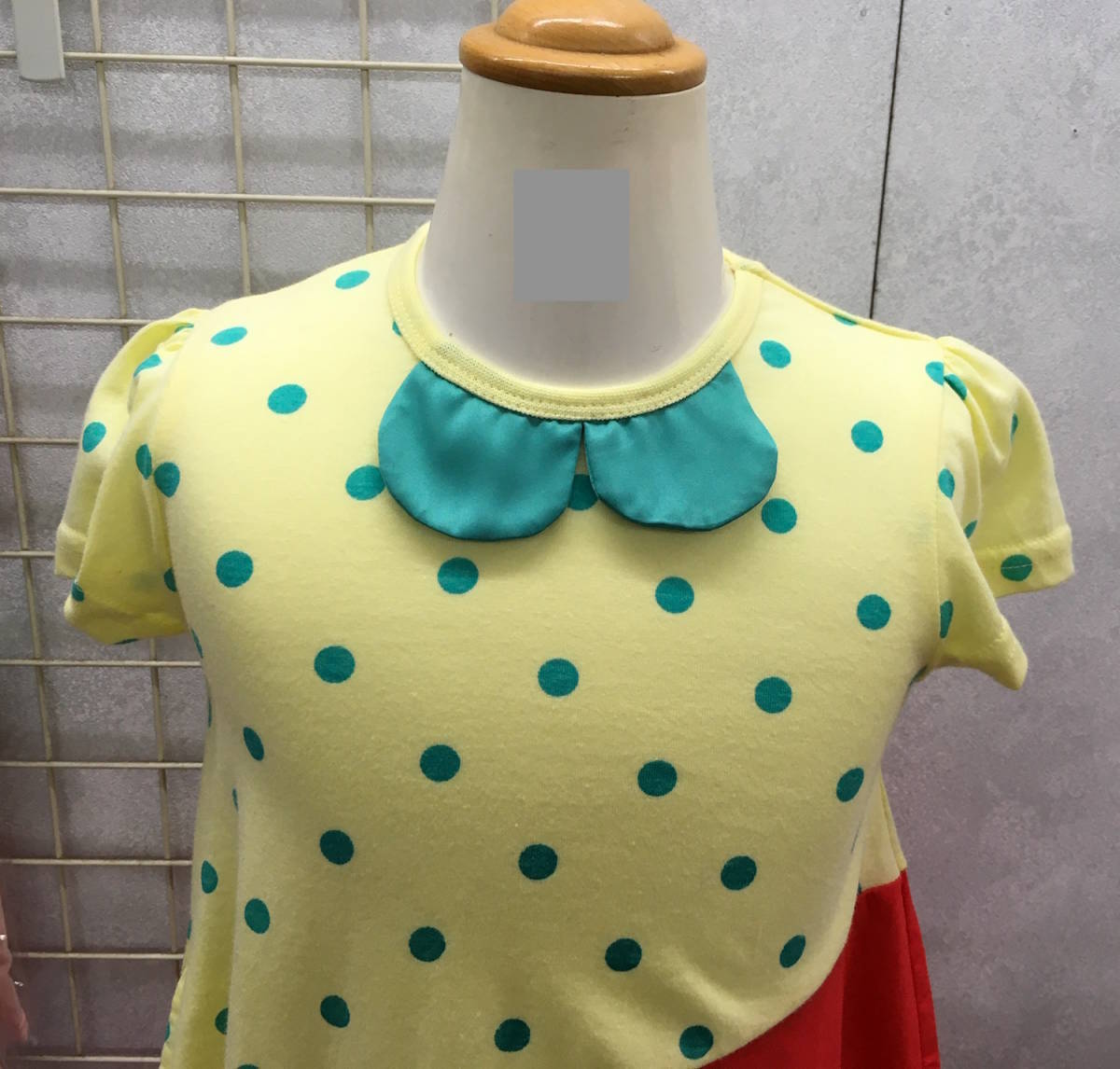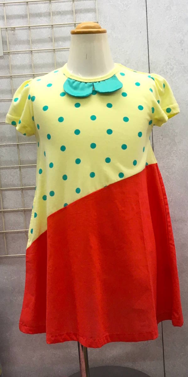 水玉が可愛い天竺生地と布帛の半袖ワンピースです。