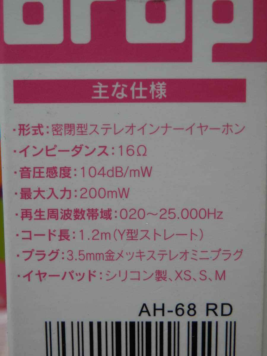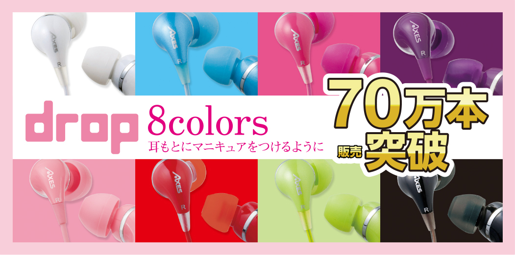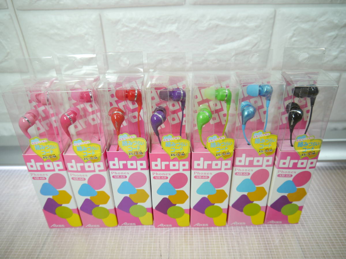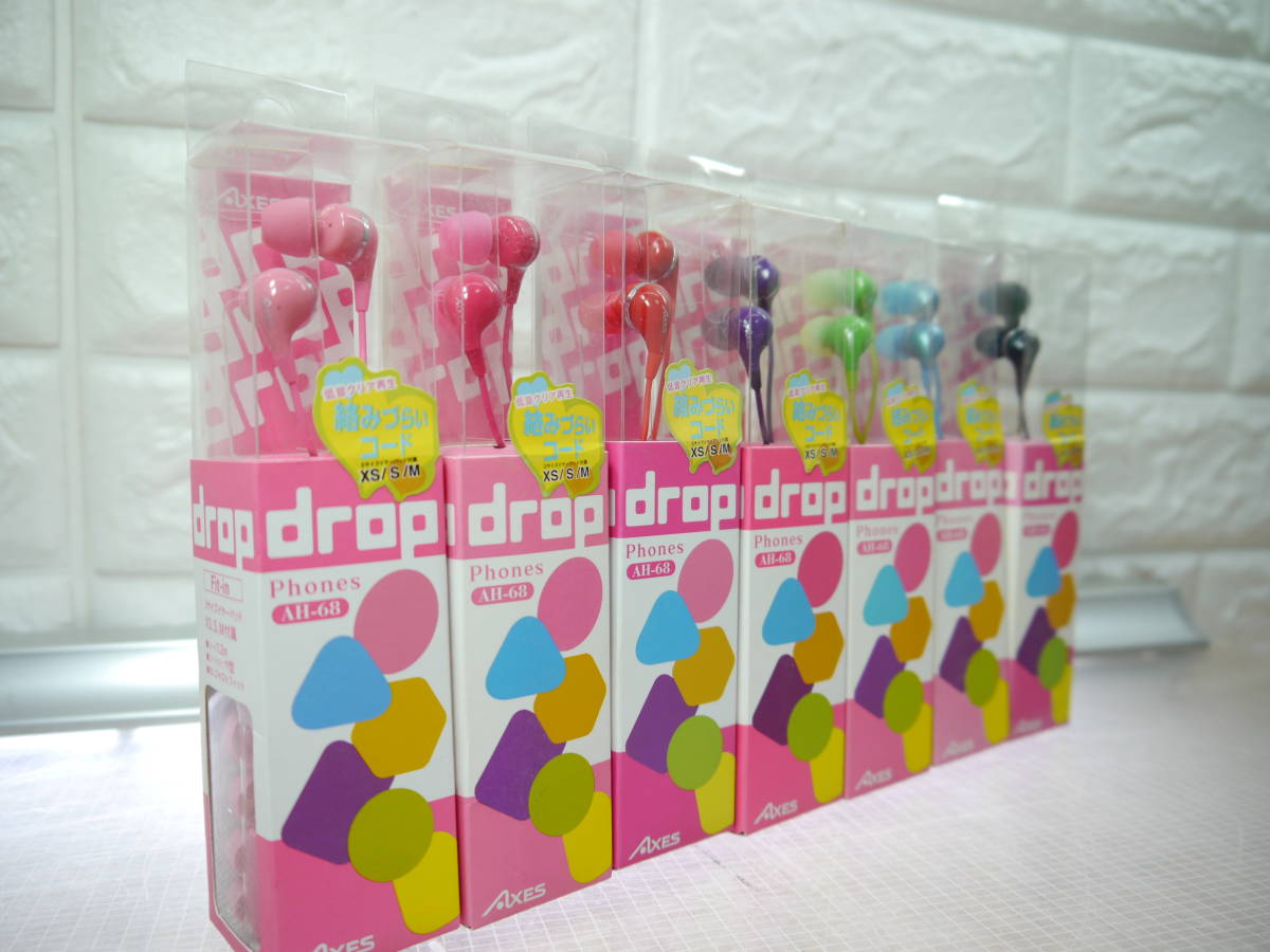 ◆ドロップ アクセス/AXES からみづらいコードのインナーフォン DROP AH-68 7色から選べる6個◆ 3サイズのイヤーパッド入り