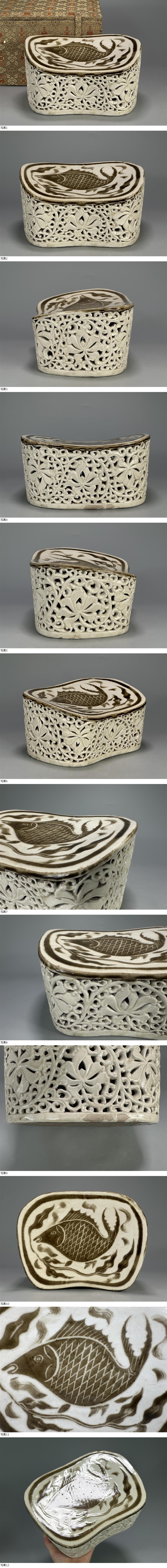 UF15-1 中国美術 宋時代 魚文透刻磁枕 時代枕 唐物