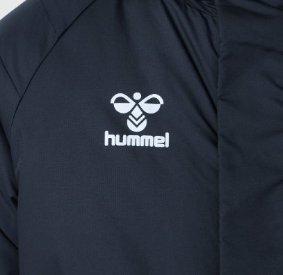 ベーシックデザインのチーム対応中綿ロングコート。左胸にユーティリティーポケット、袖口にアジャスターを配置し、前立ては比翼仕様。